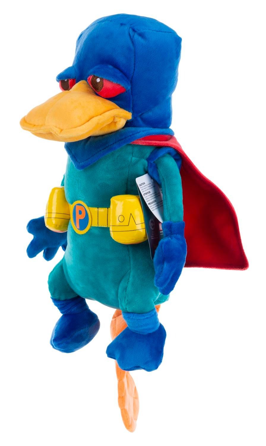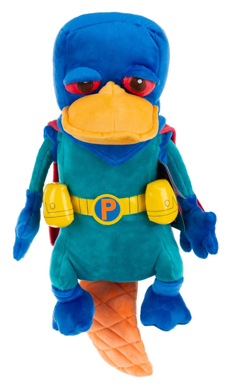 (Disney, 2010s) A Perry the Platypus plush in his superhero attire from the “Phineas & Ferb: Mission Marvel” crossover event. Measuring 9” x 11” x 14” tall, the plush is in fine condition with its original tags intact.
