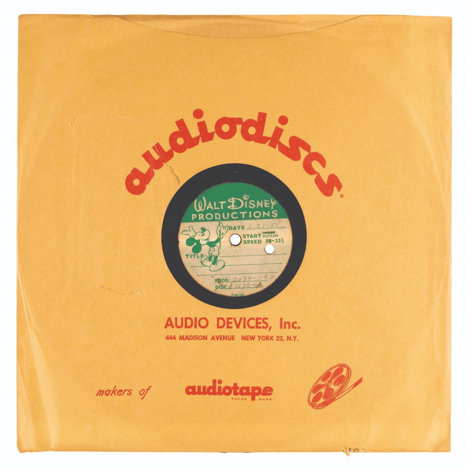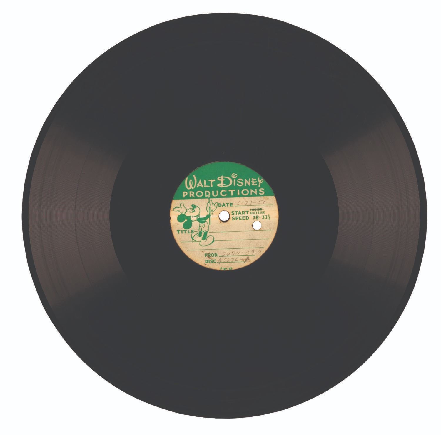 (Disney, 1951) A rare acetate from the production of “Peter Pan,” recorded on June 21, 1951. The acetate features a demo of the song “A Pirate’s Life” and audio from sequence 04.0 introducing Hans Conried as Captain Hook and Bill Thompson as Mr. Smee. This preliminary version of the scene contains alternate takes and dialogue from the final film. Measuring 12” in diameter, the record is in good condition with heavy scratches.