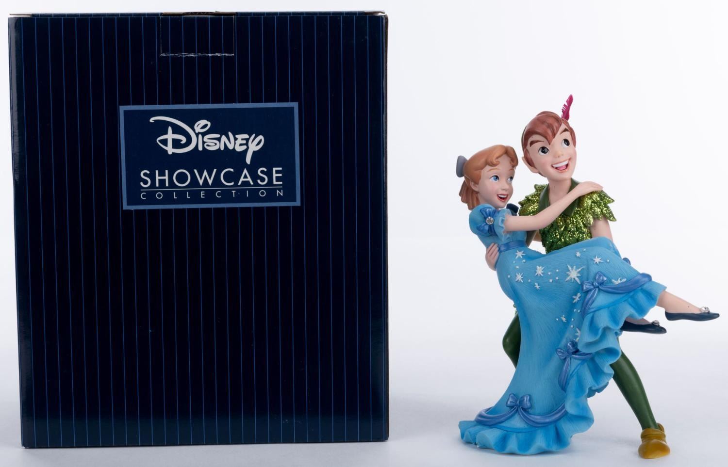(Enesco, 2022) A Disney Showcase Collection figurine of Peter Pan and Wendy from Walt Disney's "Peter Pan." Measuring 6.5" x 3.75" and 7.5" tall, the resin figurine is in fine condition and comes with the original 8" x 5.25" x 9.5" box.