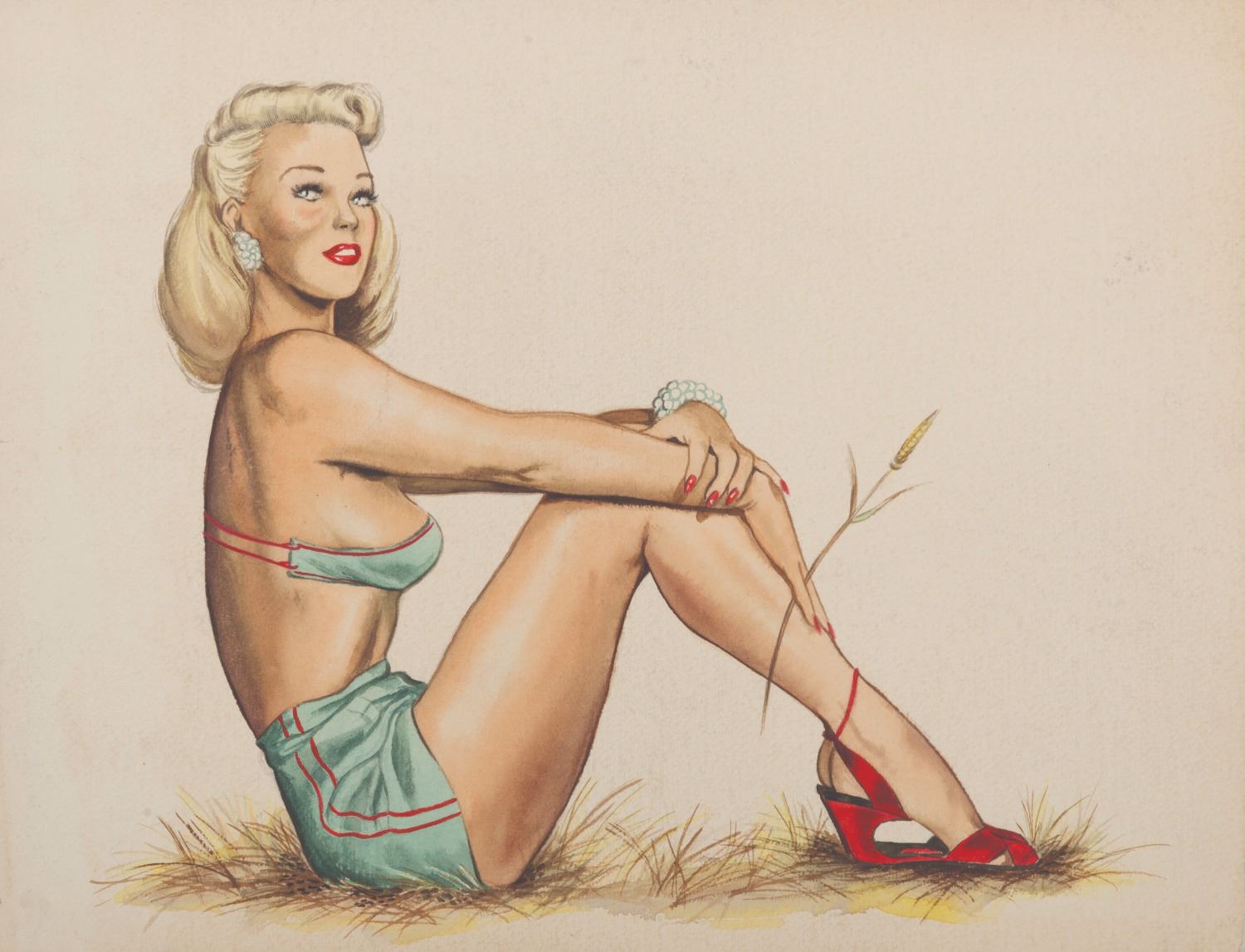 (1950s-1960s) A Pin-up style costume concept illustration. Executed in gouache, the piece measures 10"x13" and is in very good condition, with light wear from age.