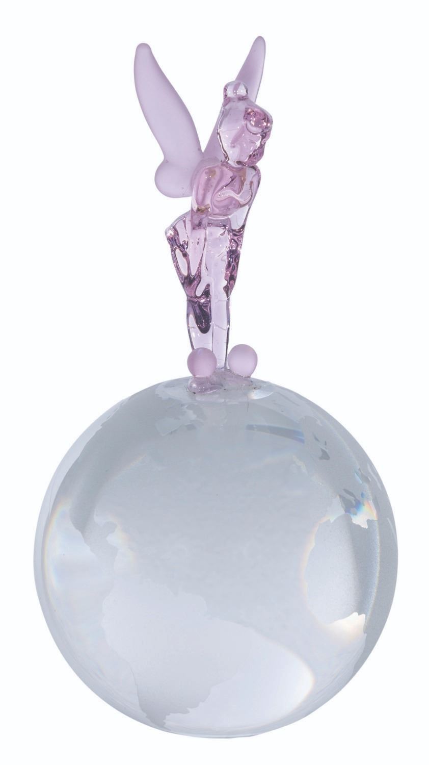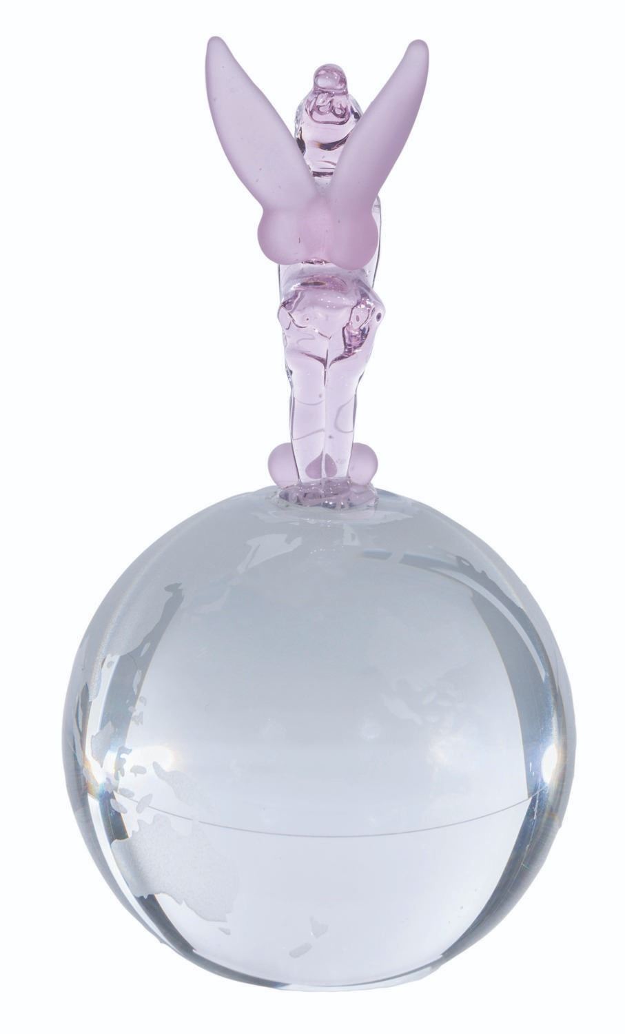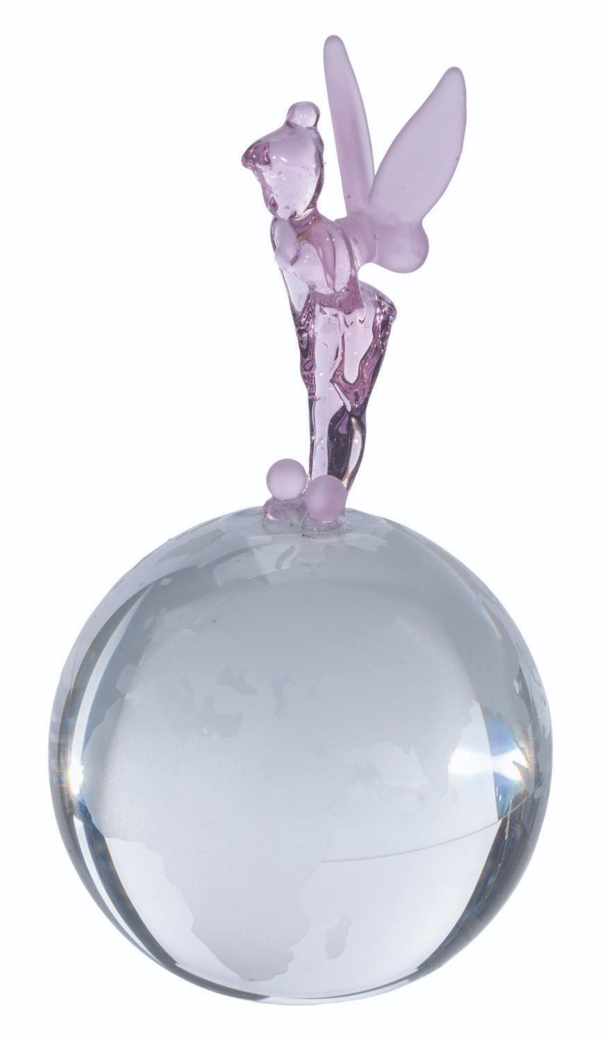(Disney, 1980s-90s) A crystal figurine of Tinker Bell atop a globe. Standing 3.5" tall, the figurine is in fine condition.