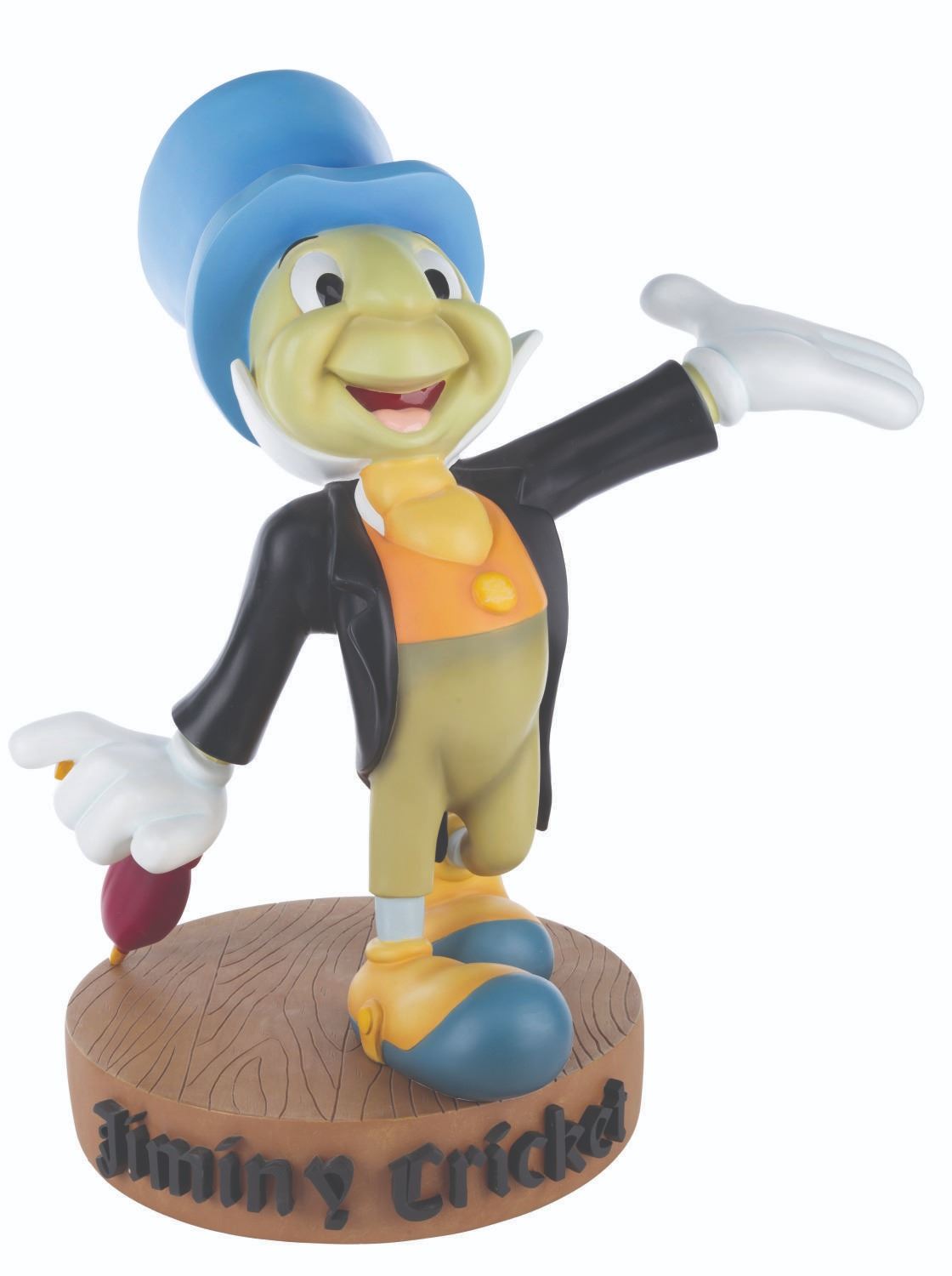 (Disney, 1990s) A Big Fig of Jiminy Cricket from “Pinocchio.” The Big Fig comes with its original box, numbered 115 of only 300. Measuring 20” x 9.5” x 20” tall on an 11” in diameter stand, the resin figure is in very good condition with light scratches, scuffs, and wear.