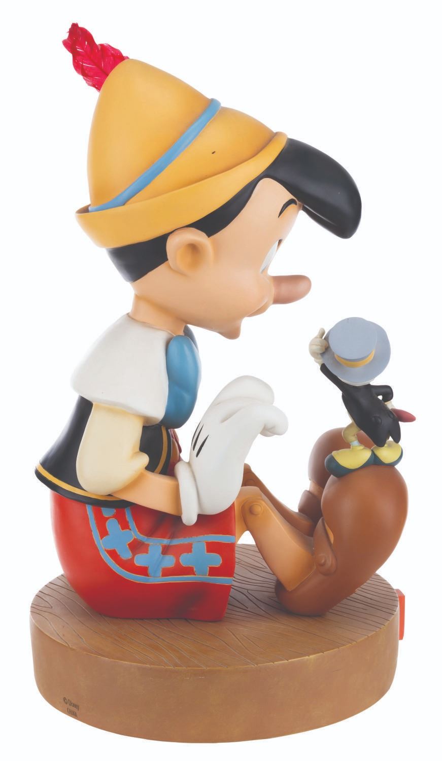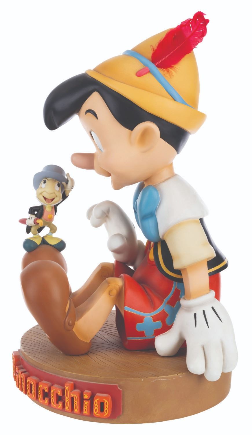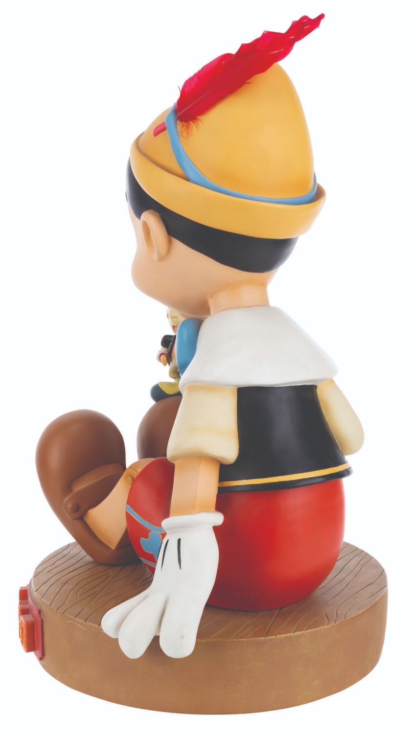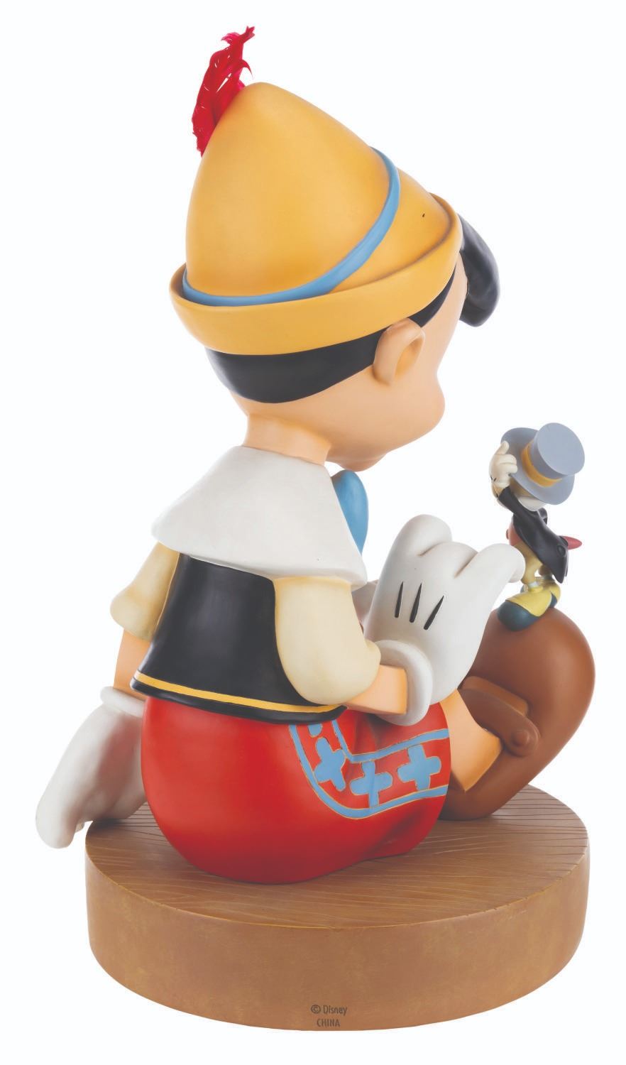 (Disney, 2003) A limited edition Pinocchio and Jiminy Cricket Big Fig statue designed by artists Kevin Kidney and Jody Daily. The intricately detailed cast resin figure is painted in screen-accurate detail with a feather accent on hat. The film's original title treatment is molded into the side of the circular cast resin base. Measuring 10.5” x 10.75” x 16” tall with a 11” in diameter base, the figure displays in very good condition with wear, scratches, and scuffs, including a black mark underneath Pinocchio’s bowtie. Due to size and weight, this item requires special shipping arrangements. Please inquire before bidding.