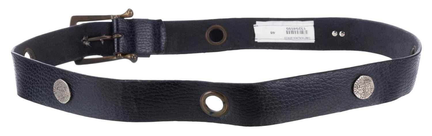 (Walt Disney World, 1990s-2000s) A Cast Member Belt worn by Pirates of the Caribbean hosts at Walt Disney World. With a Disney World Services label size 48, the leather belt with doubloon-style decorations is in very good condition with typical wear from Park use.