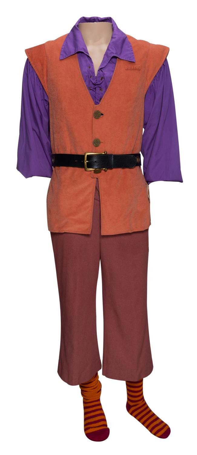 (Disney Parks, 1980s) A rare Attractions Host costume from the "Pirates of the Caribbean" at either Disneyland or Walt Disney World. This style of wardrobe is identical to those once worn by Cast Members of both Parks, with this set retaining its original Walt Disney World Wardrobe Department labels inside. The vest features doubloon-shaped buttons, the shirt is a "L," and the pants are an unknown size. This set is in very good condition with some minor wear throughout from park use, handling, and age.