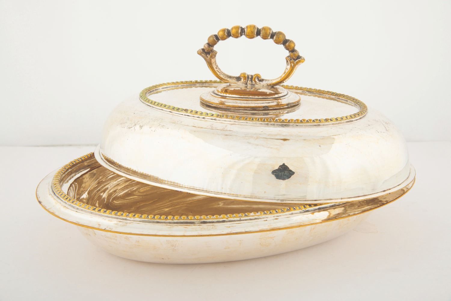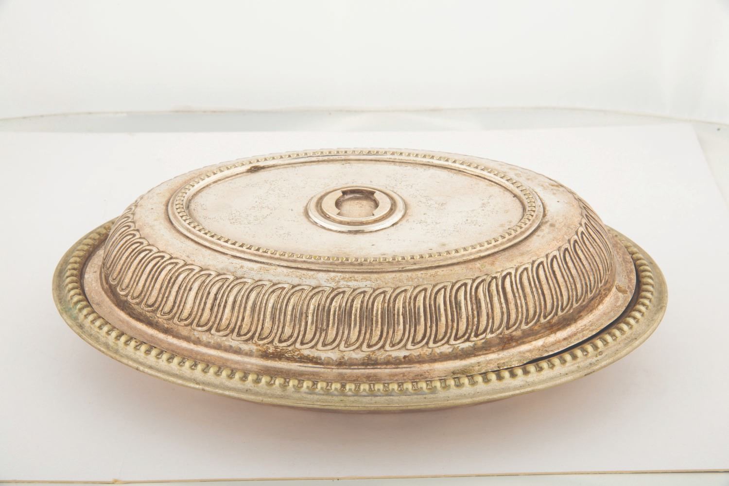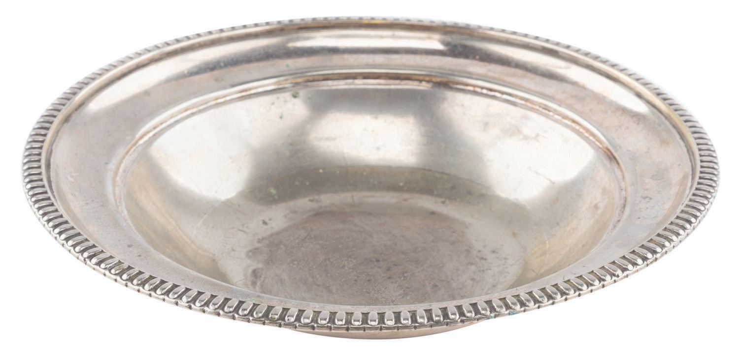 (Disney, 2003) A collection of eight Isla de Muerta treasure props from "Pirates of the Caribbean: The Curse of the Black Pearl.” Included are two plates, one bowl, two serving trays with lids, and three lidless serving trays. Ranging in size from 8” in diameter to 12.25”, the nickel silver treasure props are in fair to good condition with oxidation from age, scratches, scuffs, and wear from production use.