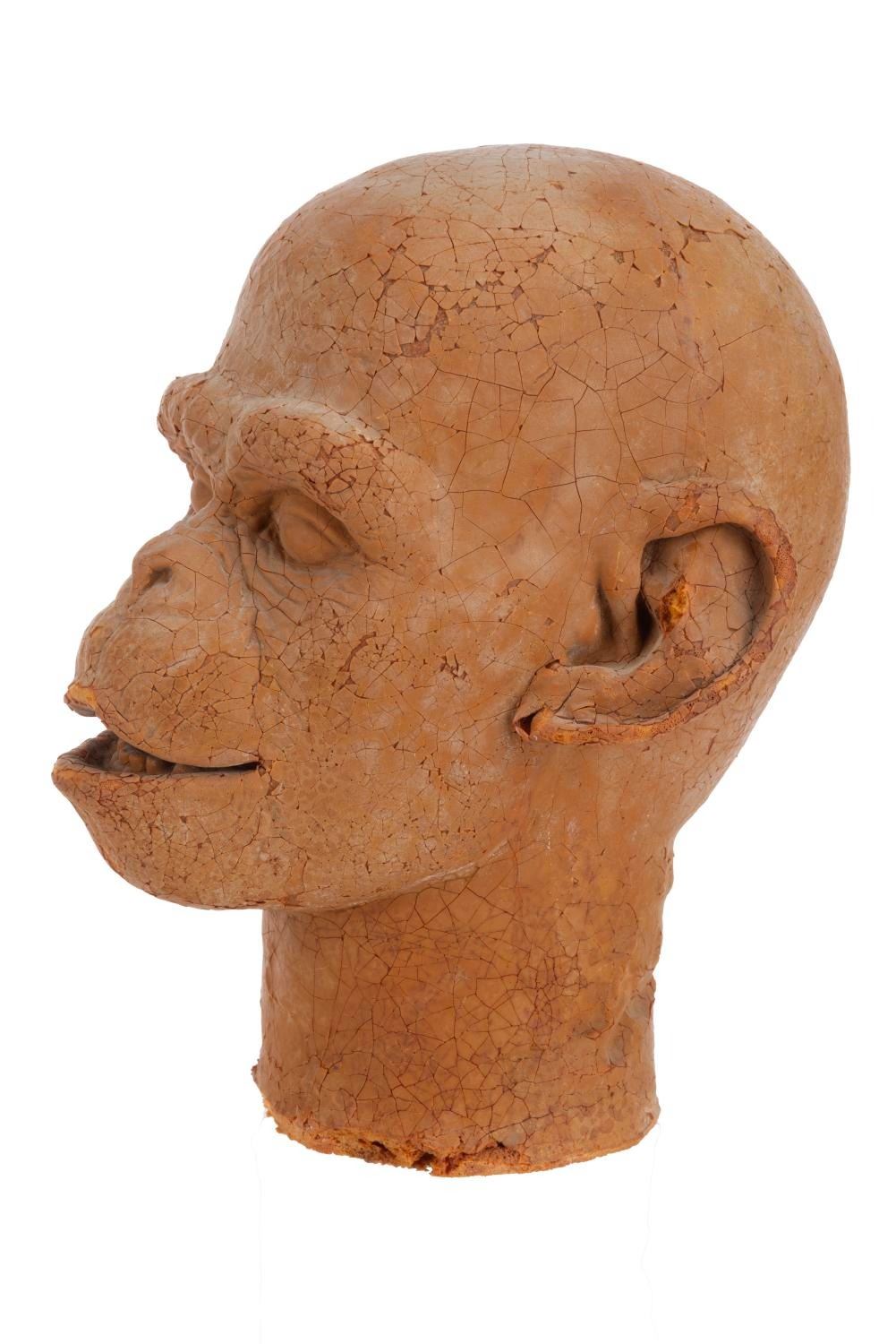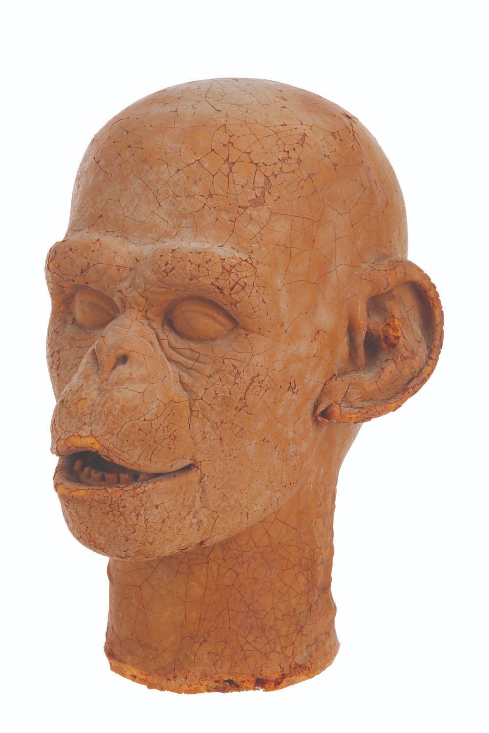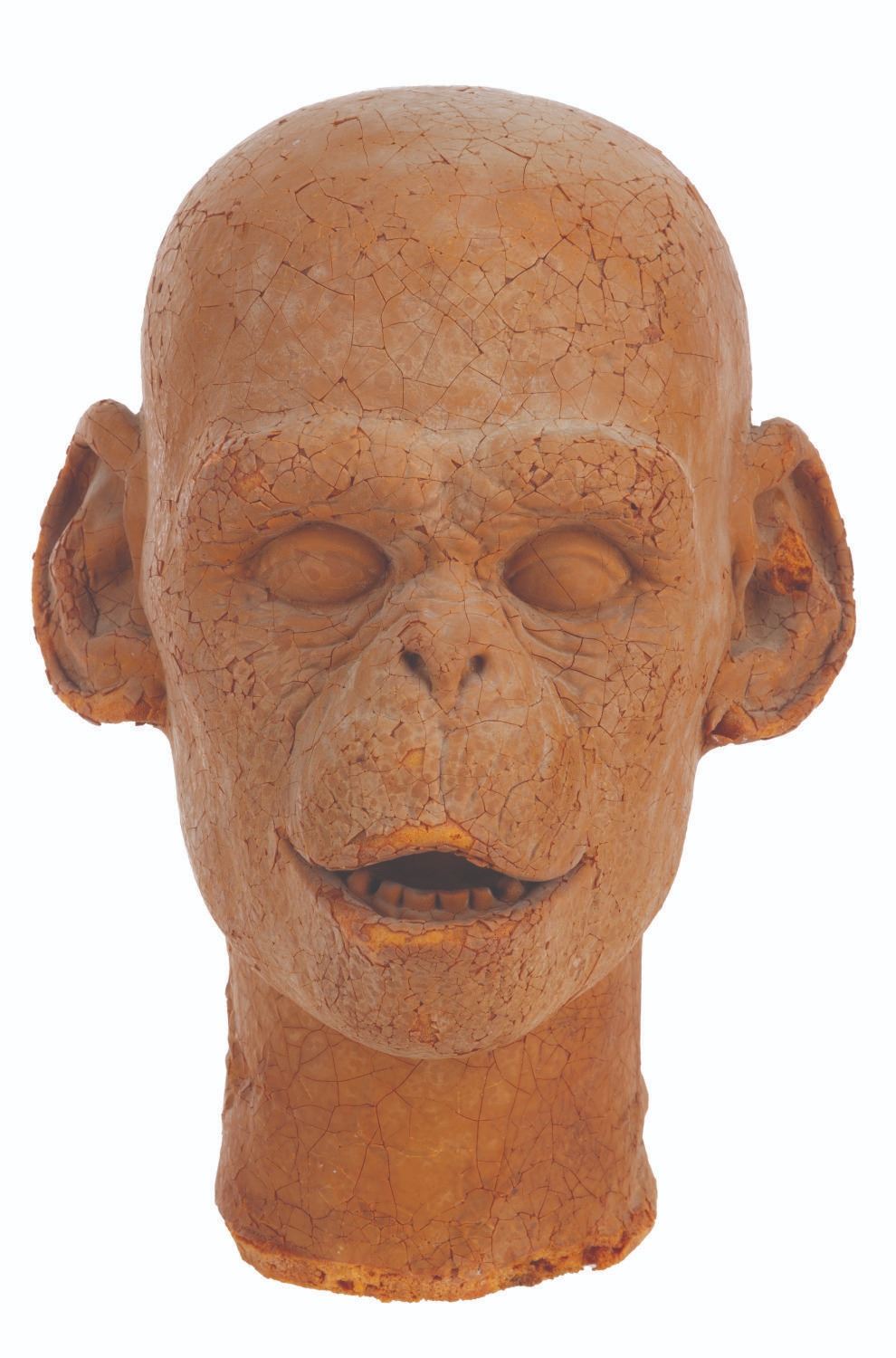(20th Century Fox, 1967) A second master model for Chimpanzee makeup designed by the legendary John Chambers for the original “Planet of the Apes” film. Chambers cast this chimp in foam to make a toolstone mold for creating full-head latex appliances that match this in appearance. Chambers himself hand wrote on the bottom “2ND CHIMP SMALL 3.16.67.” The masks from this master were used for many secondary chimpanzee characters in the films, with the second model allowing for a mix of appearances. Chambers was awarded a special Oscar for Makeup for his groundbreaking work on “Planet of the Apes” in 1969. Measuring 8” x 12” x 12” tall, the master model displays in fair condition, with cracking and flaking throughout the surface layer.