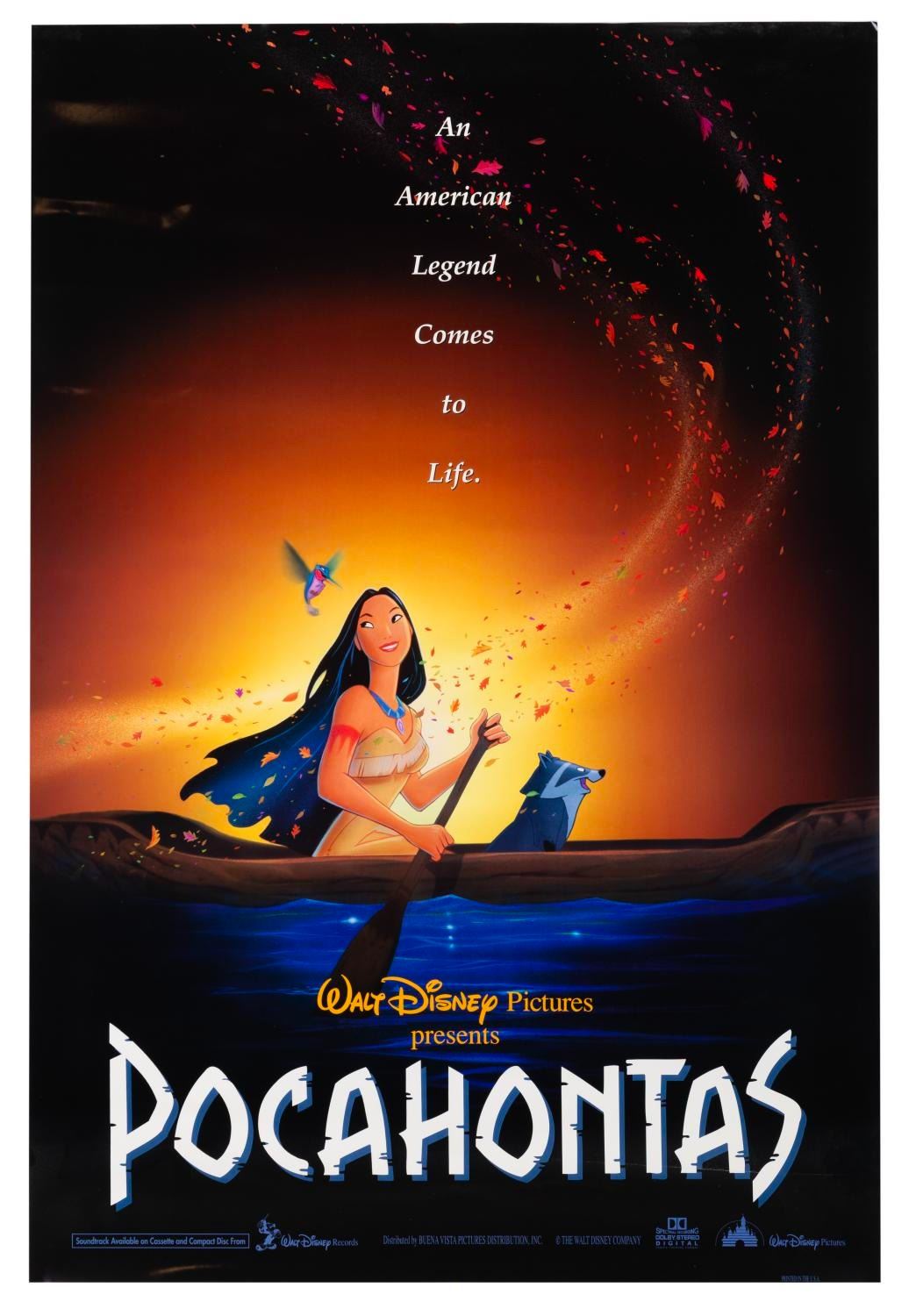 (Disney, 1995) A one-sheet for the original theatrical release of "Pocahontas." Measuring 27" x 40", the poster is in good condition with light handling wear and waviness from storage.