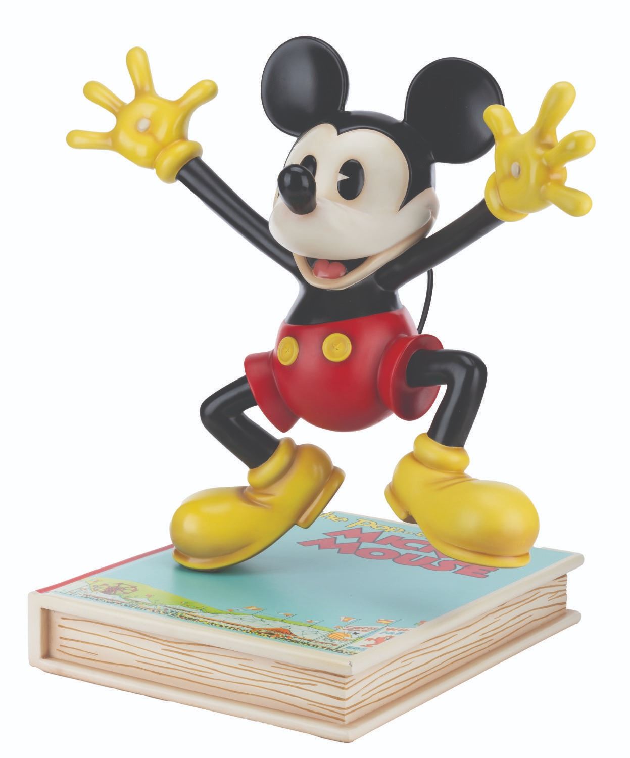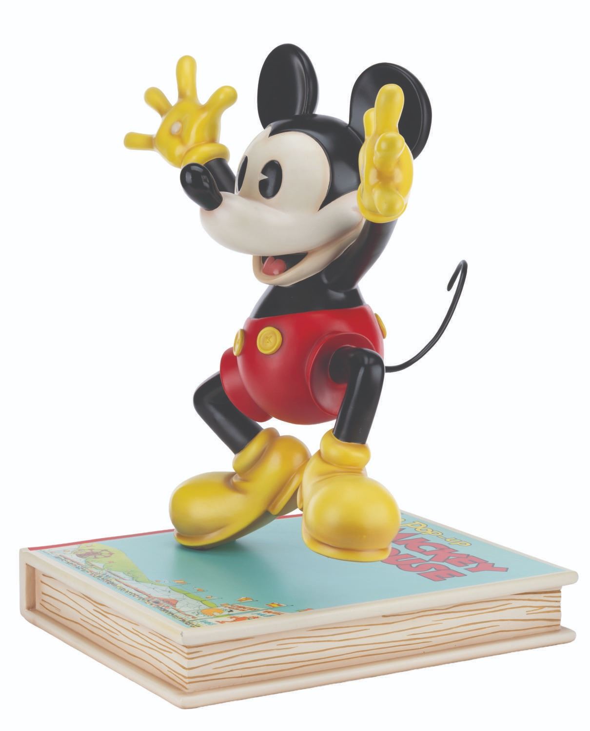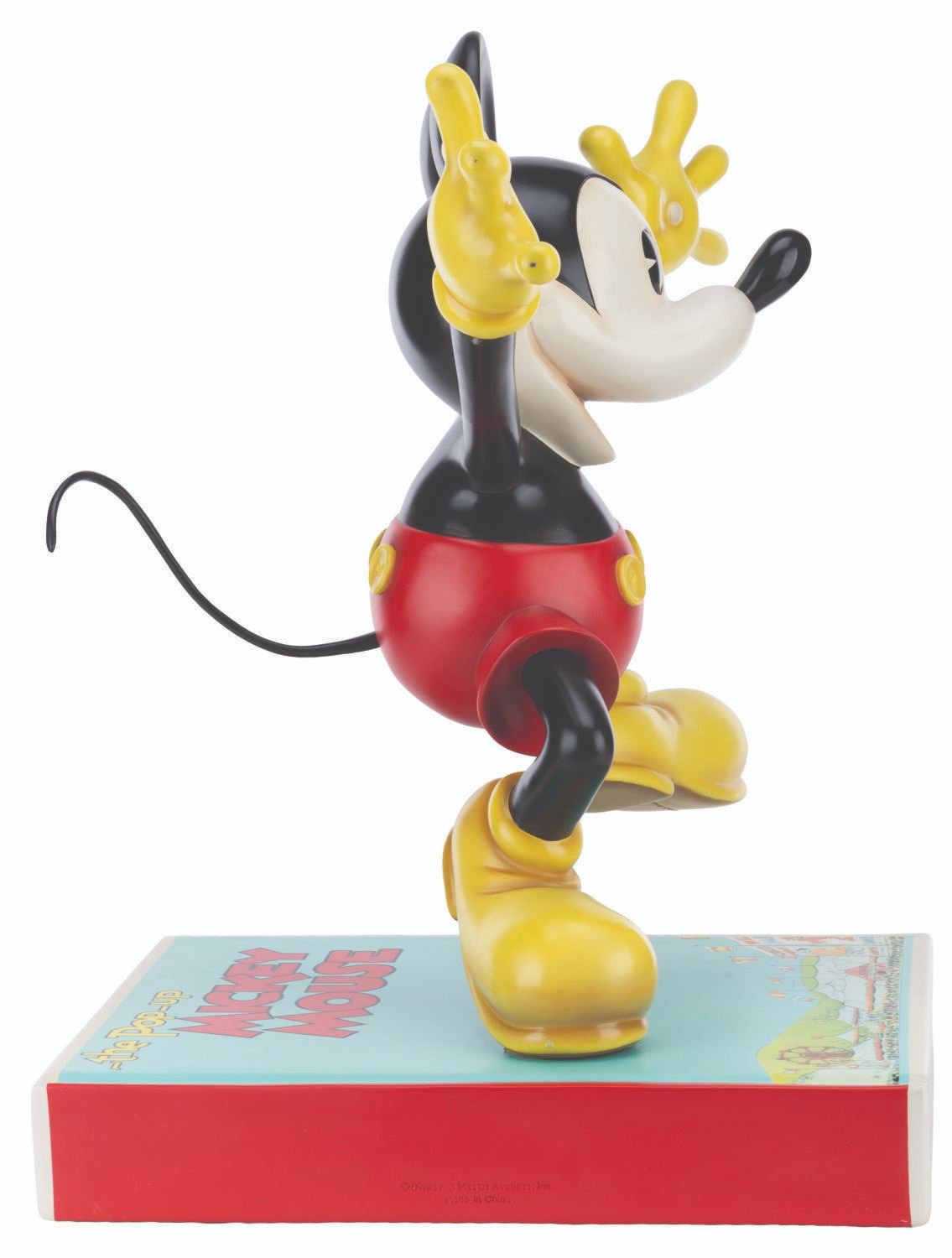 (Disney, 2006) A limited edition Disney Showcase Collection Mickey Mouse Big Fig by Master Replicas. Mickey is perched upon the 1933 comic The Pop-Up Mickey Mouse, positioned in the cover pose. Measuring 23" x 17.25" x 23", the resin Big Fig is in very good condition with a chip at the book's corner, scuffs, scratches, and light wear. This lot requires special shipping arrangements. Please inquire before bidding.