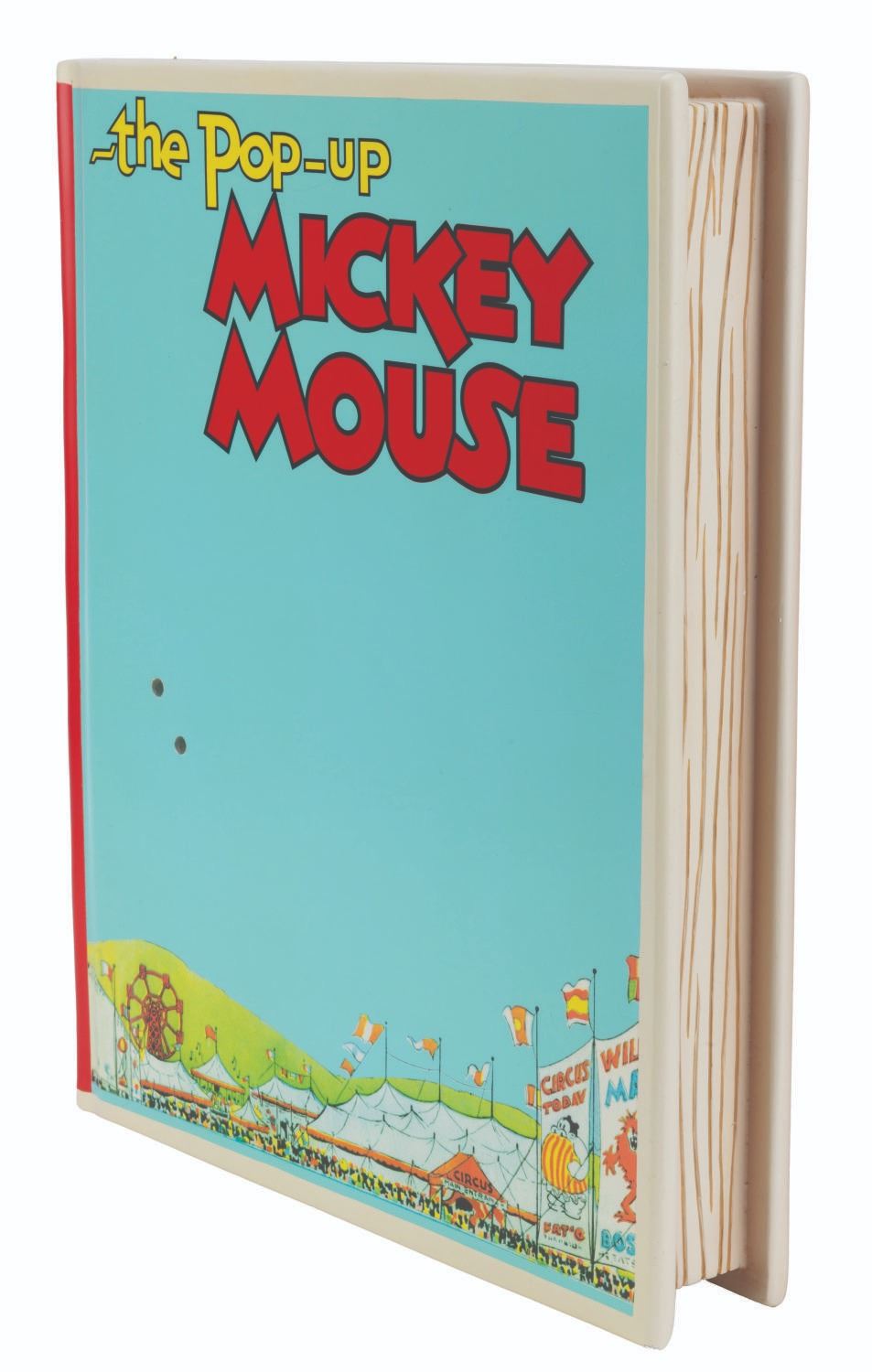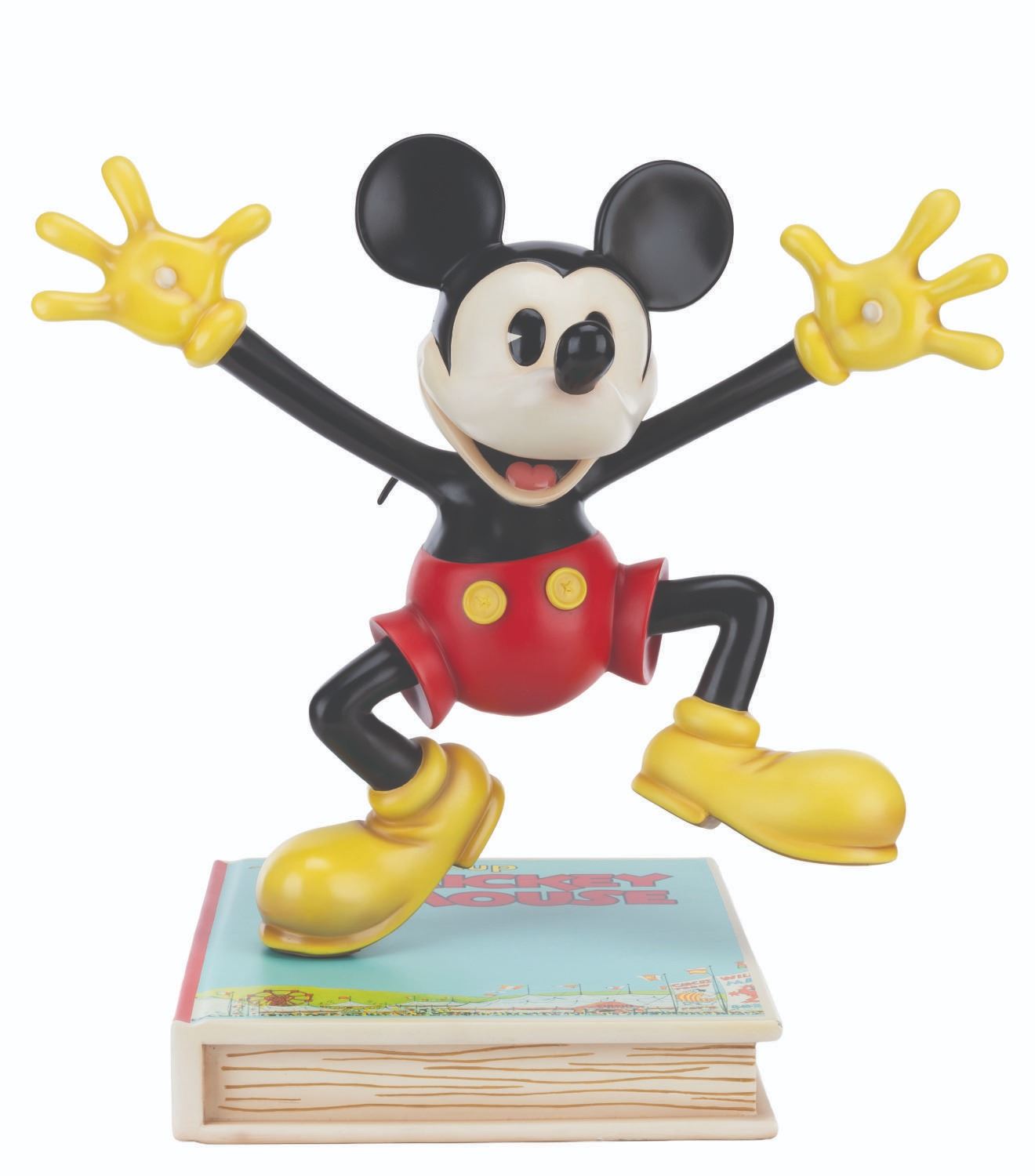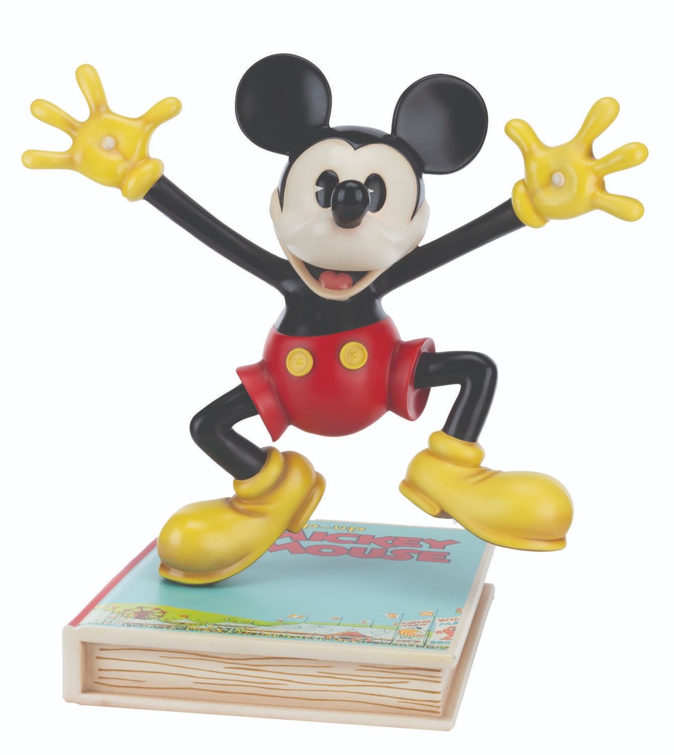 (Disney, 2006) A limited edition Disney Showcase Collection Mickey Mouse Big Fig by Master Replicas. Mickey is perched upon the 1933 comic The Pop-Up Mickey Mouse, positioned in the cover pose. Measuring 23" x 17.25" x 23", the resin Big Fig is in very good condition with a chip at the book's corner, scuffs, scratches, and light wear. This lot requires special shipping arrangements. Please inquire before bidding.