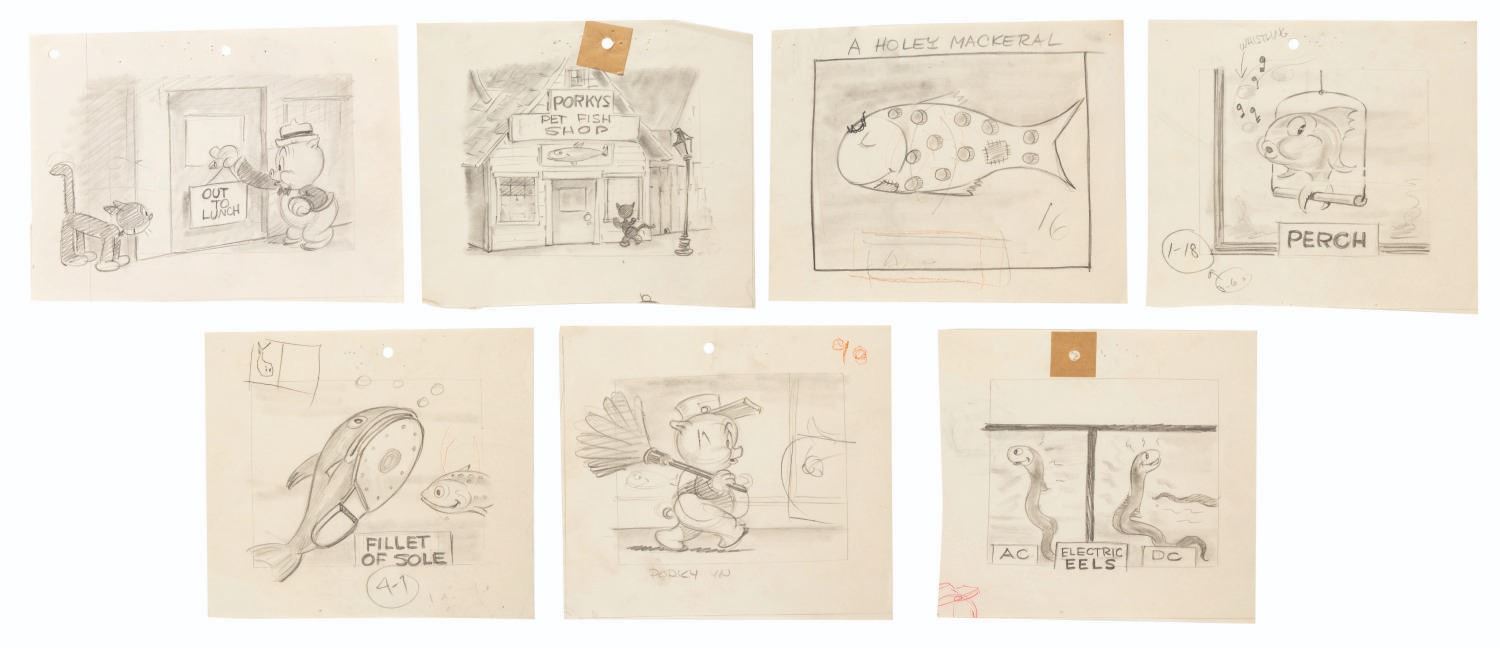 A “Porky’s Poor Fish” Storyboard Panel Collection.