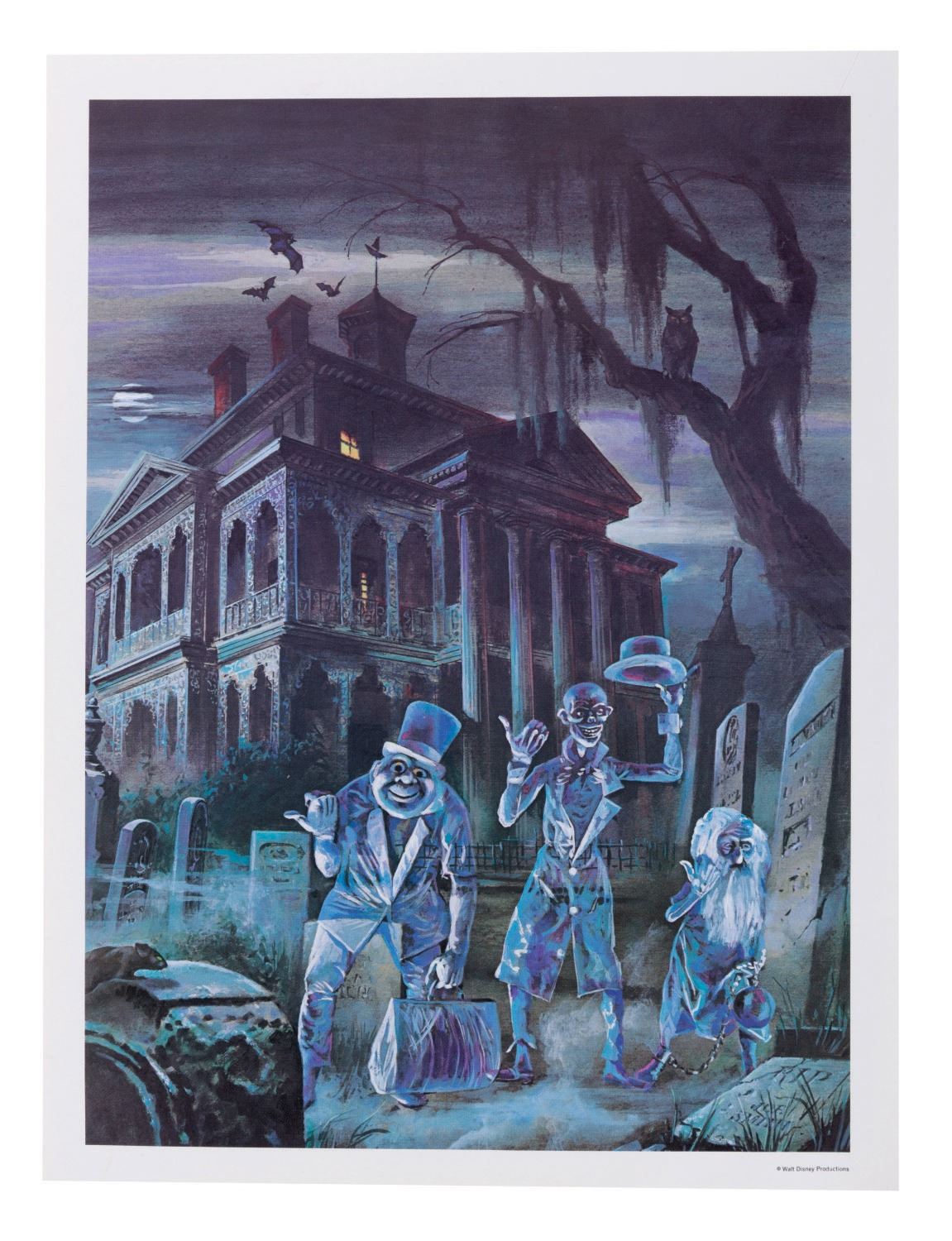 (Disneyland, 2000s) A small print of the Disneyland Haunted Mansion. The artwork was originally created by Dan Martinez for the cover of the 1974 Disney News Magazine. The print is in fine condition.