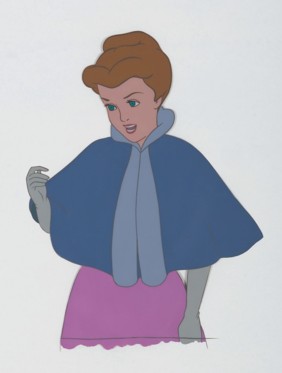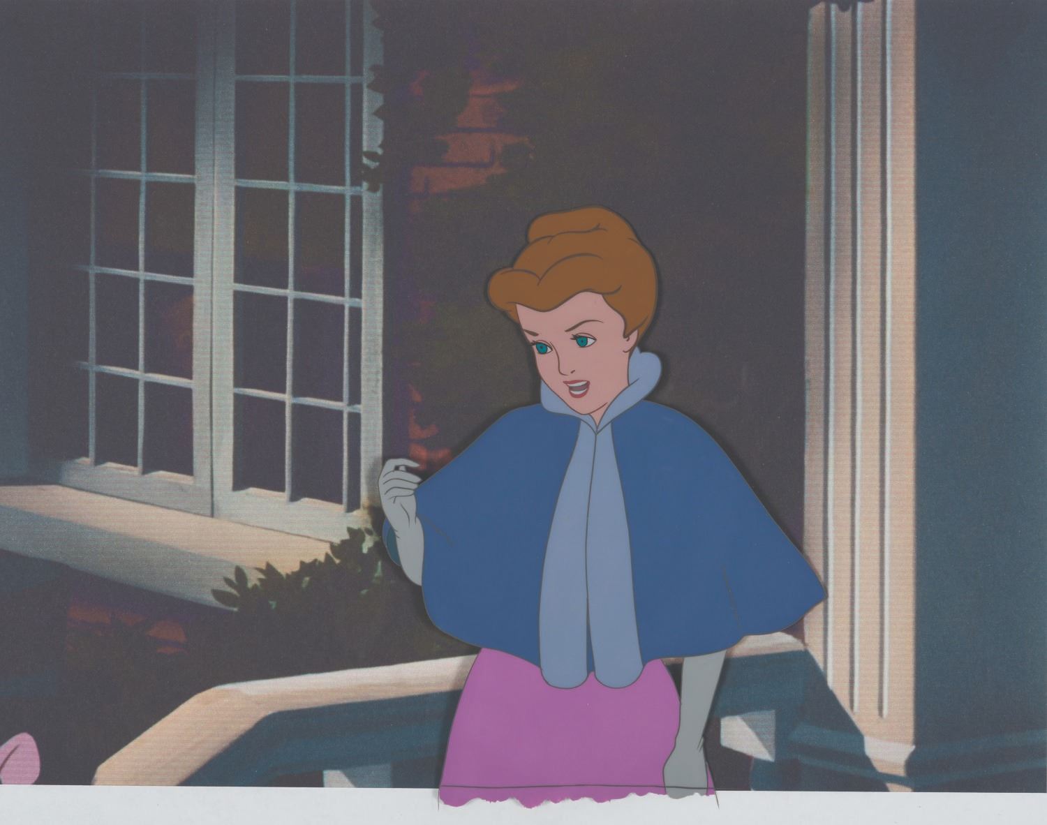 (Disney, 1953) An original production cel of Mrs. Darling, from Walt Disney's"Peter Pan." Mrs. Darling has an image size of 4.5"x6" on an untrimmed 16"x12.5" cel. The cel has been paired with a color copy background for presentation. The cel is in very good condition with all paint intact.