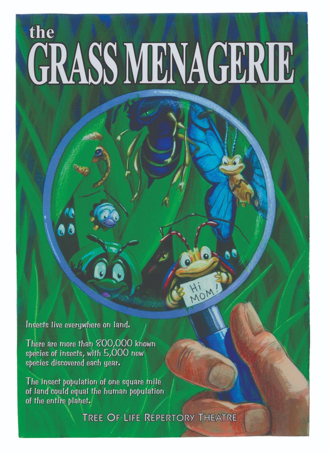 (Disney’s Animal Kingdom, 1998) A prototype "The Grass Menagerie" poster from the queue of It's Tough to be a Bug. Measuring 27" x 39.5", the poster is in very good condition with light edge wear, creasing, and adhesive residue on the reverse from previous mounting.