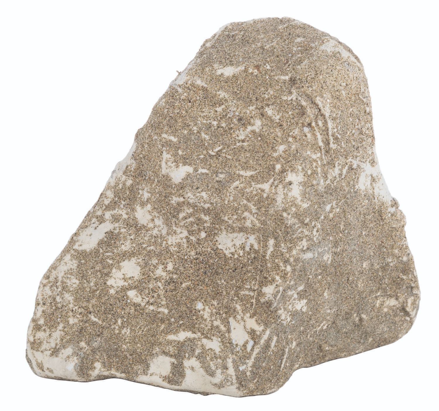(Paramount, 1981) A lightweight false sandstone rock, used in the 1981 feature film,"Raiders of the Lost Ark." The custom-made piece for the film is constructed of sand, plaster, and papier mâché, and hollow inside. Measuring 8"x5.5"x6.25" high, the prop rock is in good production-used condition, with some small worn spots along edges. The prop comes directly from a special effects artist that worked on the film.