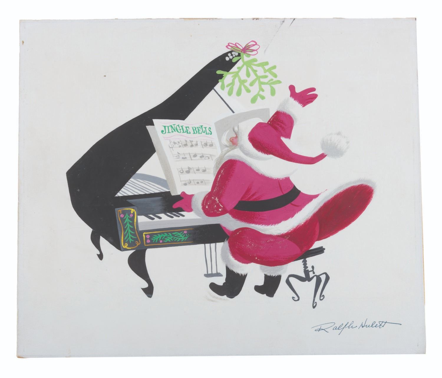 (California Artists Inc., 1950s-60s) A painting by Ralph Hulett, commissioned by California Artists Inc. for their greeting cards. Measuring 10.5" x 12.5", the gouache art on artist's board is signed by Hulett and is in good condition with paint loss, scratches, scuffs, and wear.