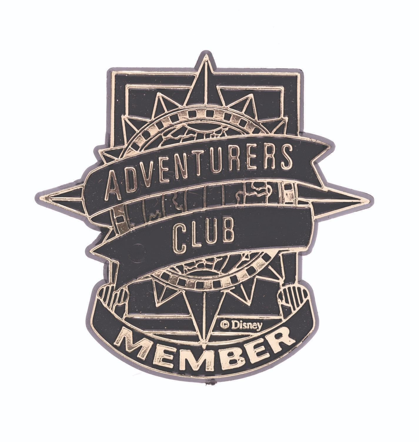(Walt Disney World, 1989-2008) A rare souvenir pinback badge from the Adventurers Club on Pleasure Island at Walt Disney World. Measuring 2.25" x 2.25", the plastic badge is in very good condition with light wear.