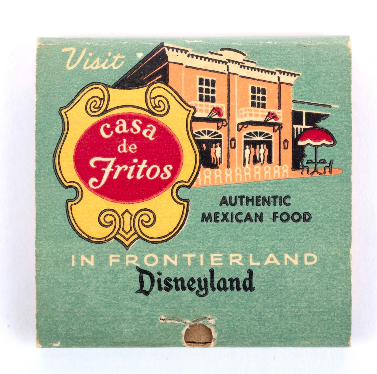 (Disneyland 1960s) A rare matchbook from the Casa De Fritos Restaurant in Frontierland. The matchbook is in fine unused condition with all matches intact, with very light wear from age.