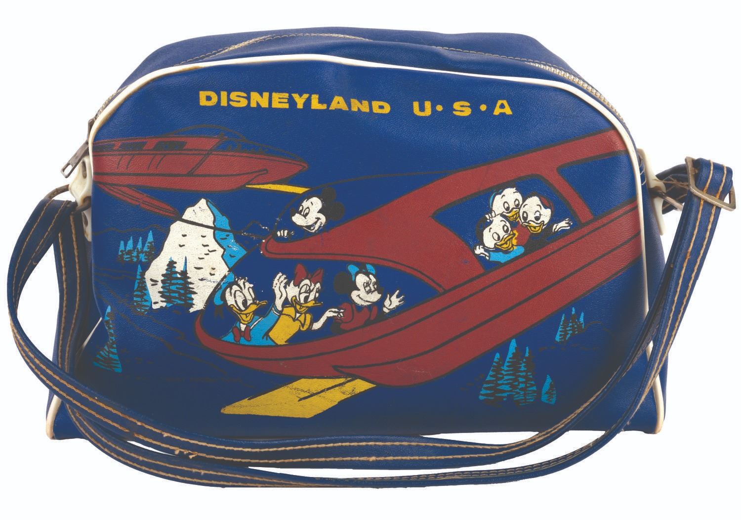 Disneyland, 1960s) A rare Disneyland U.S.A. Monorail travel bag. During the era that the attraction was utilized as a practical form of transportation between the Hotel and the Park, few Monorail-themed souvenirs were produced. Measuring 5" tall and 11" long, the bag is in good condition with minor scuffs, fading, and light wear.