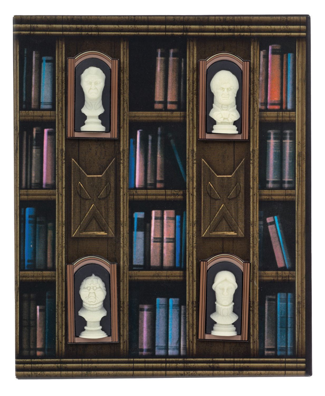 (Walt Disney World, 2003) An extremely rare, boxed "Haunted Mansion 999 Happy Haunts Ball" pin set released in an edition of 350 pieces. The glow-in-the-dark pin set was designed by artist Michelle Morrow. Measuring 1.75" and 1", each pin comes mounted and contained within an 8.25"x6.5" and 1.5" deep book-inspired box. All components are in fine condition.