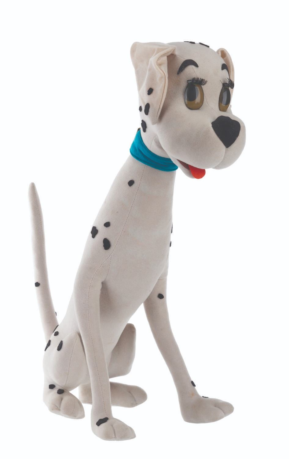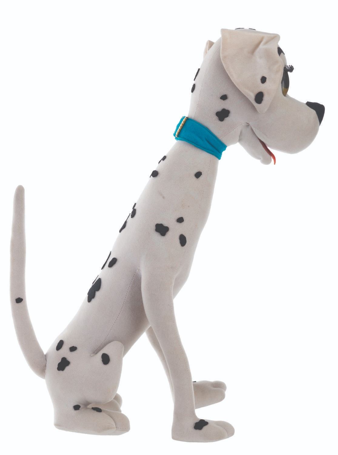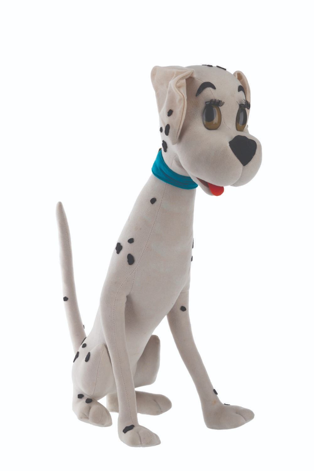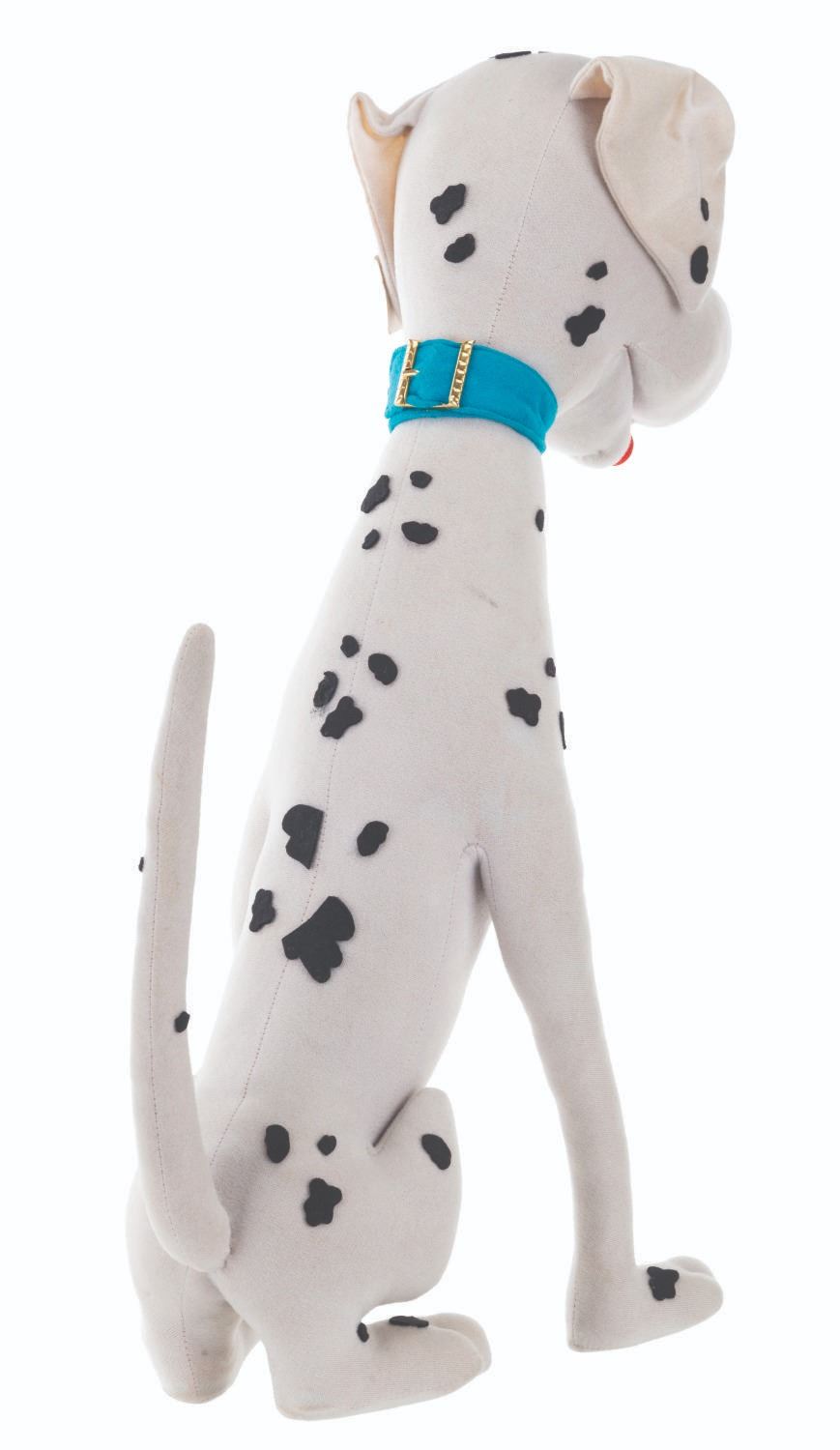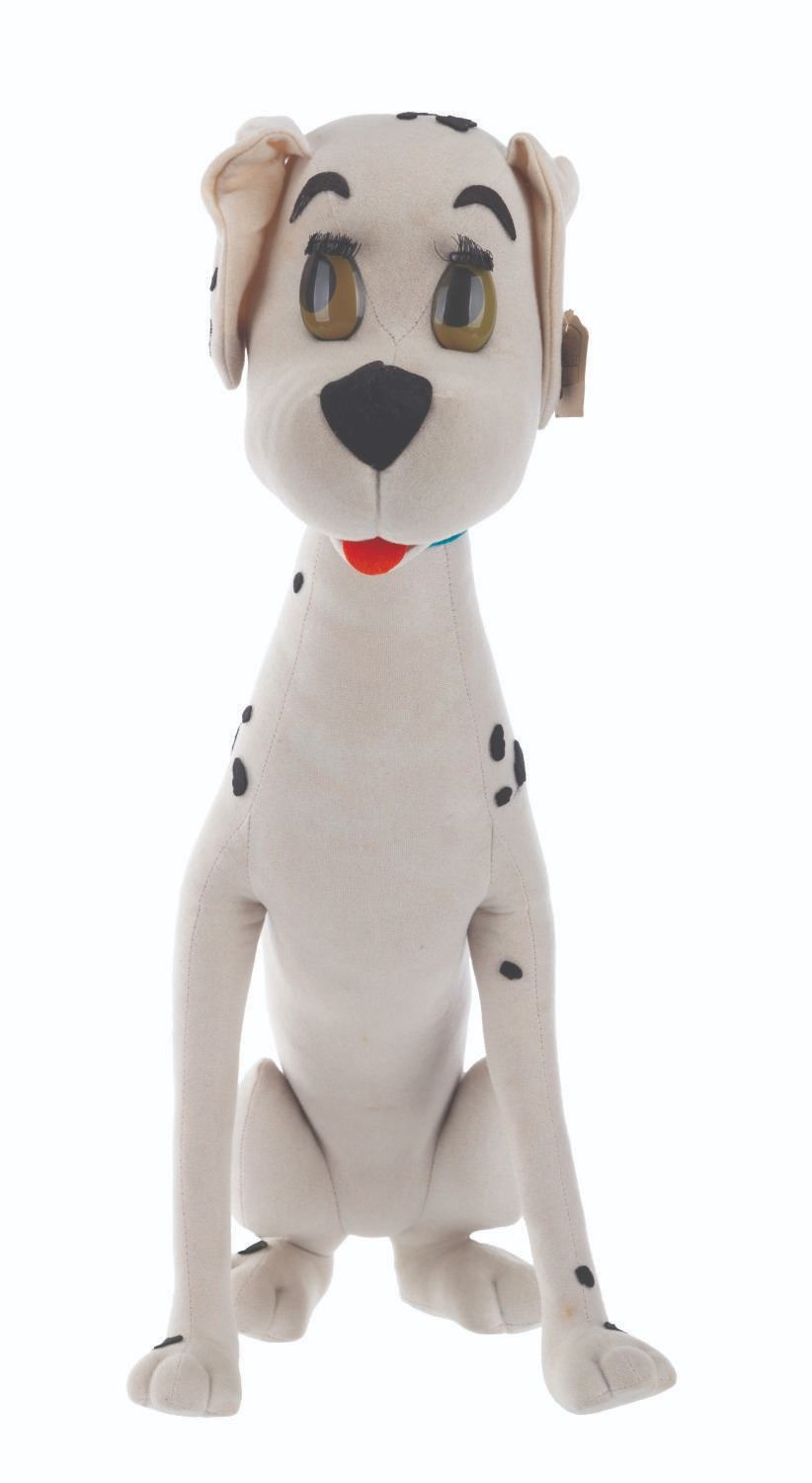 (Lars, 1960s) A very rare Perdita Dalmatian doll inspired by Walt Disney's "One Hundred and One Dalmatians." The doll is attributed to Italian dollmaker Lars, who was licensed to manufacture Disney dolls from the 1950s to the 1970s. These dolls were unavailable in the United States, resulting in their rarity. Measuring 15.5" x 9.5" x 20" tall, the doll displays in very good condition with light stains and its original ear tag intact.