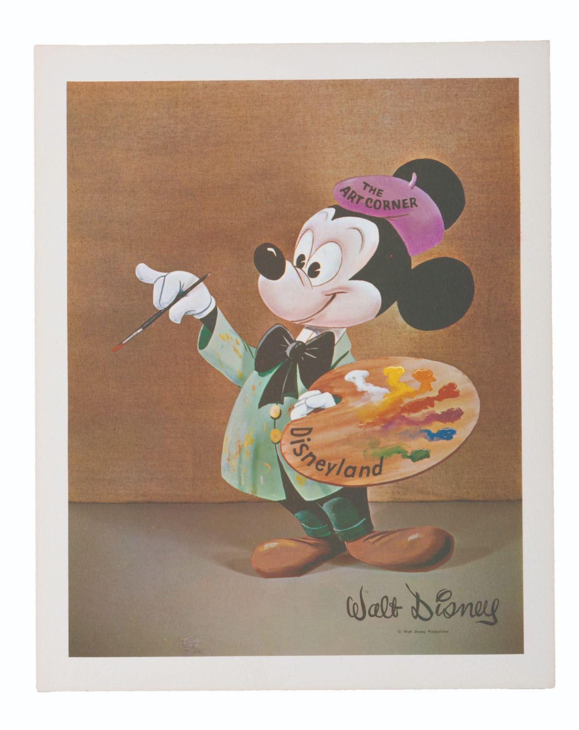 (Disneyland, 1950s-60s) A rare print of Mickey Mouse originally sold at the Art Corner in Tomorrowland. Measuring 8.5 " x 10.75 ", the print is in very good condition with light discoloration from age and wear.