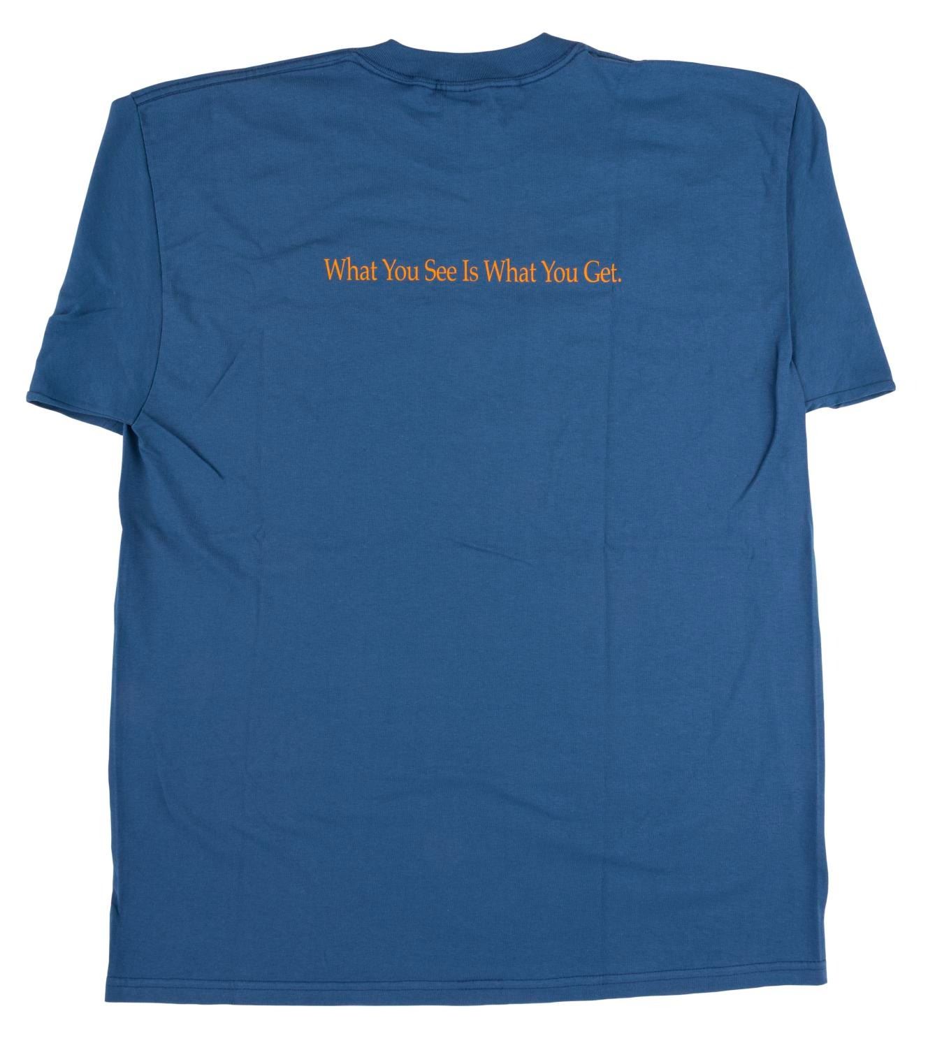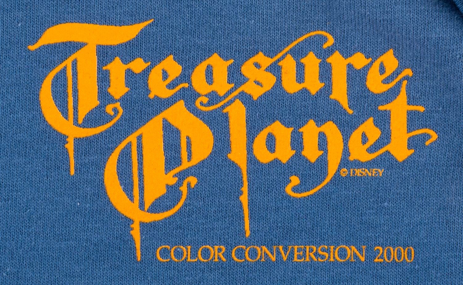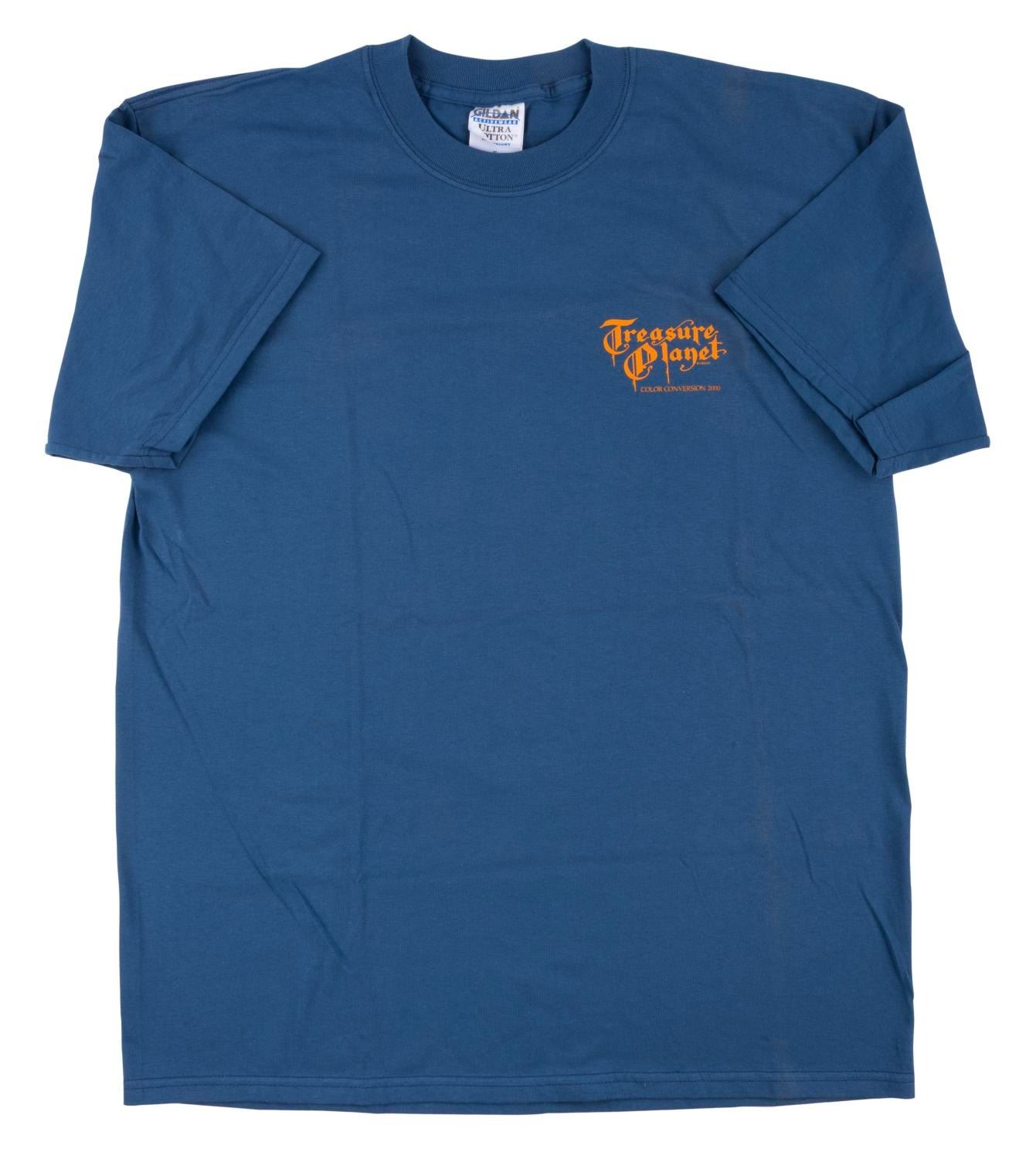 (Disney, 2002) A very rare "Treasure Planet" T-Shirt from the Disney Feature Animation Color Conversion team. Improvements to the Studio’s CAPS system reduced color conversion time for this feature from four weeks down to 1.5 days. The back reads, "What You See Is What You Get." Labeled a size XL, the shirt is in fine as-new condition.