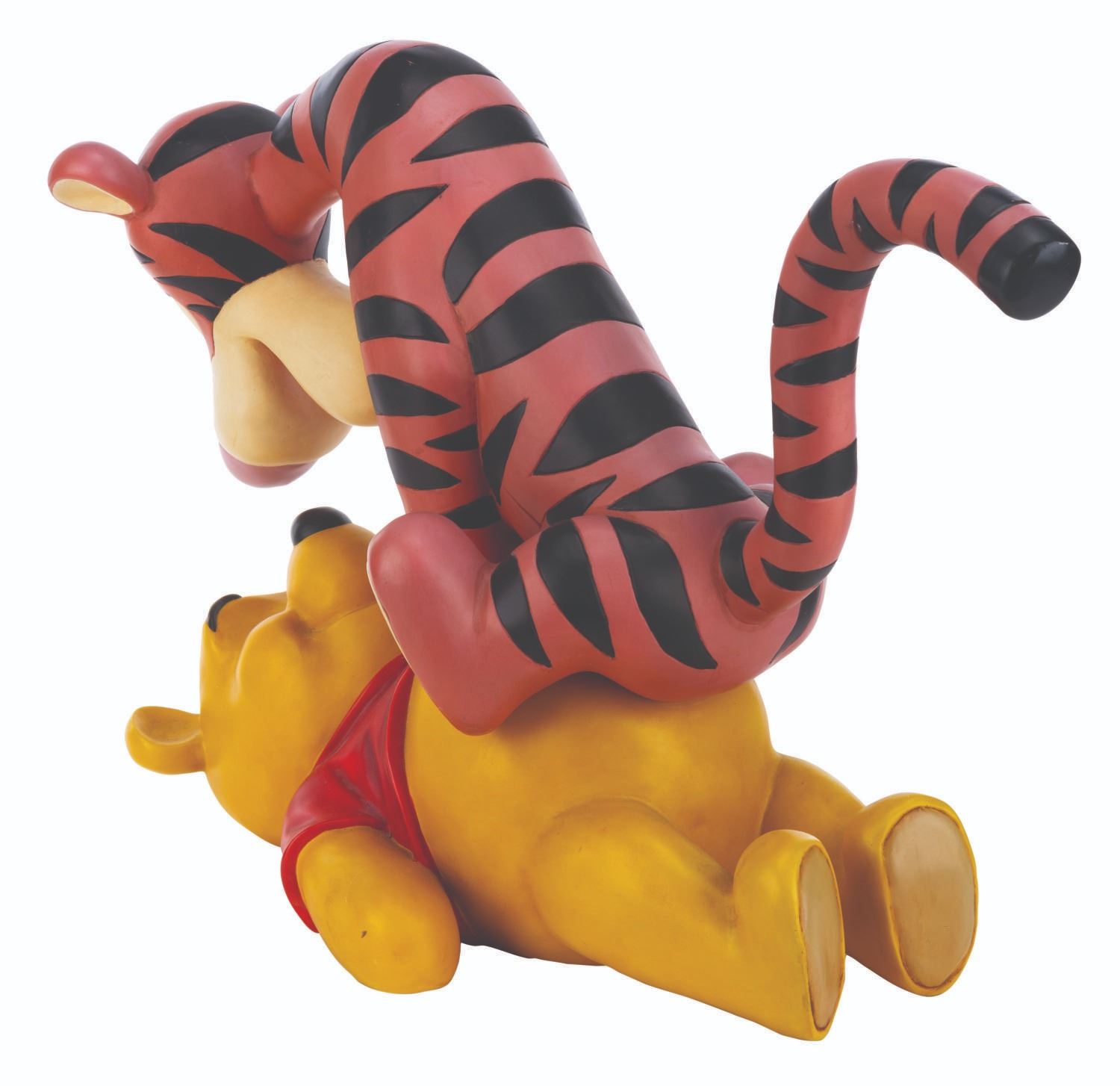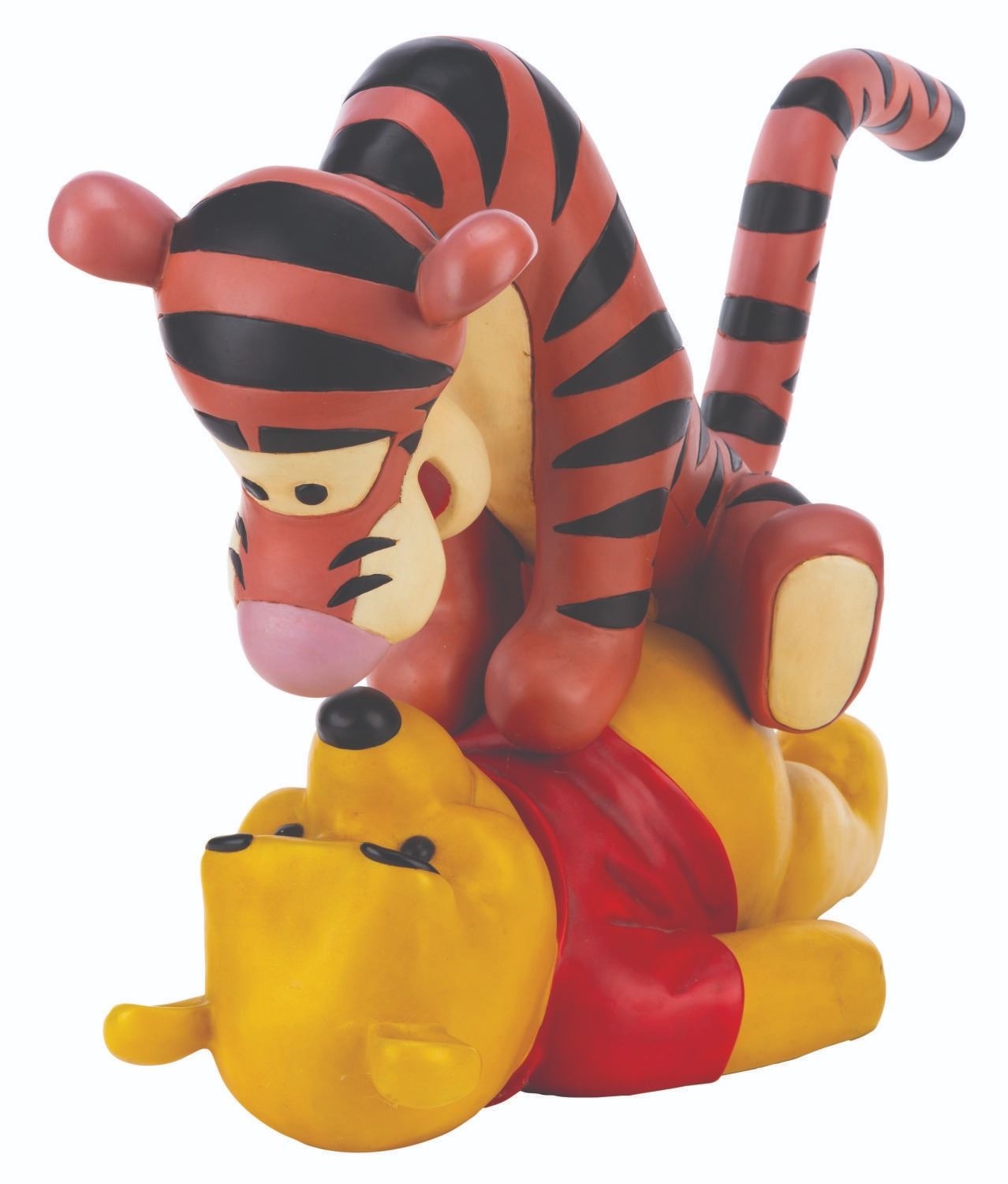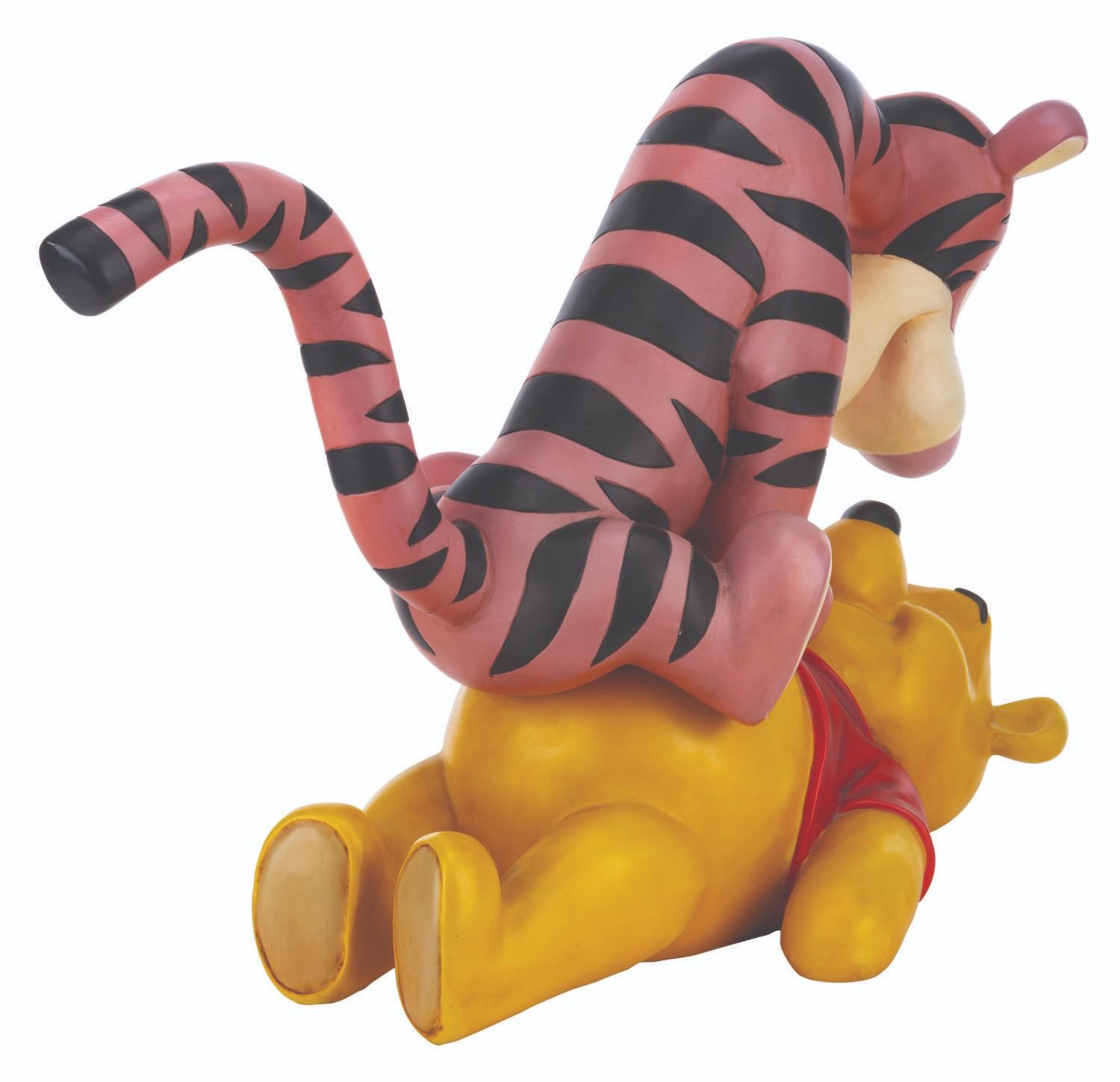 (Disney, 2000s) A very rare Big Fig of Winnie the Pooh and Tigger, released through the Disney Parks. This is one of the most sought-after Pooh Big Figs. Measuring 24" x 10" x 16" tall, the piece displays in good condition, with small scuffs and scratches from display, and Tigger's orange-colored areas showing fading, particularly to the right side.