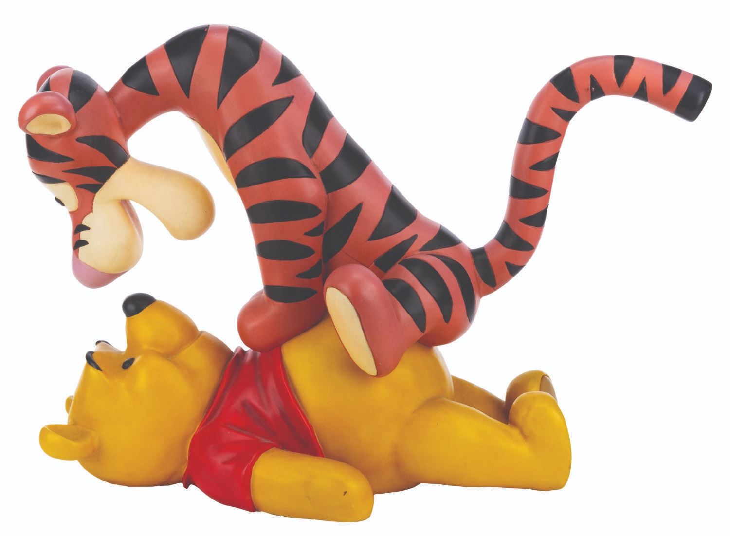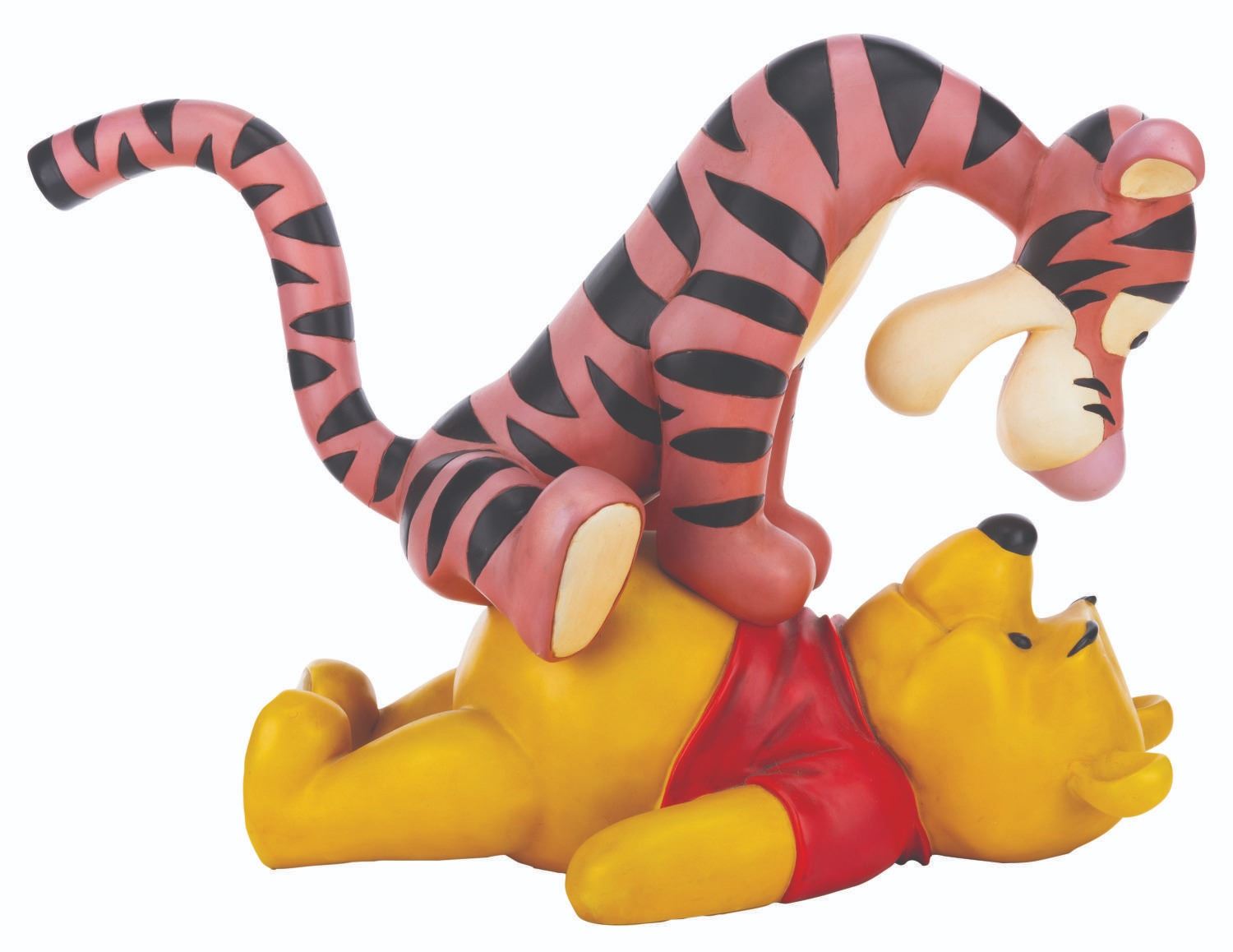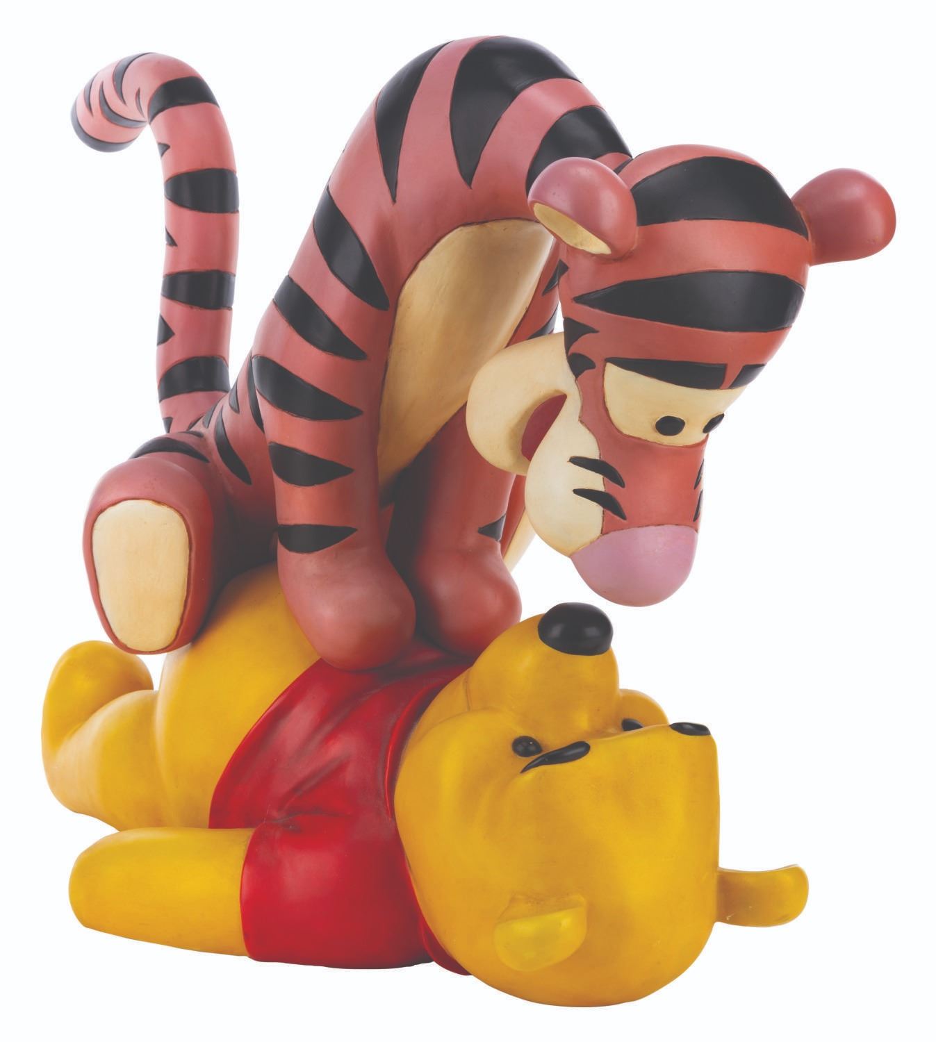 (Disney, 2000s) A very rare Big Fig of Winnie the Pooh and Tigger, released through the Disney Parks. This is one of the most sought-after Pooh Big Figs. Measuring 24" x 10" x 16" tall, the piece displays in good condition, with small scuffs and scratches from display, and Tigger's orange-colored areas showing fading, particularly to the right side.