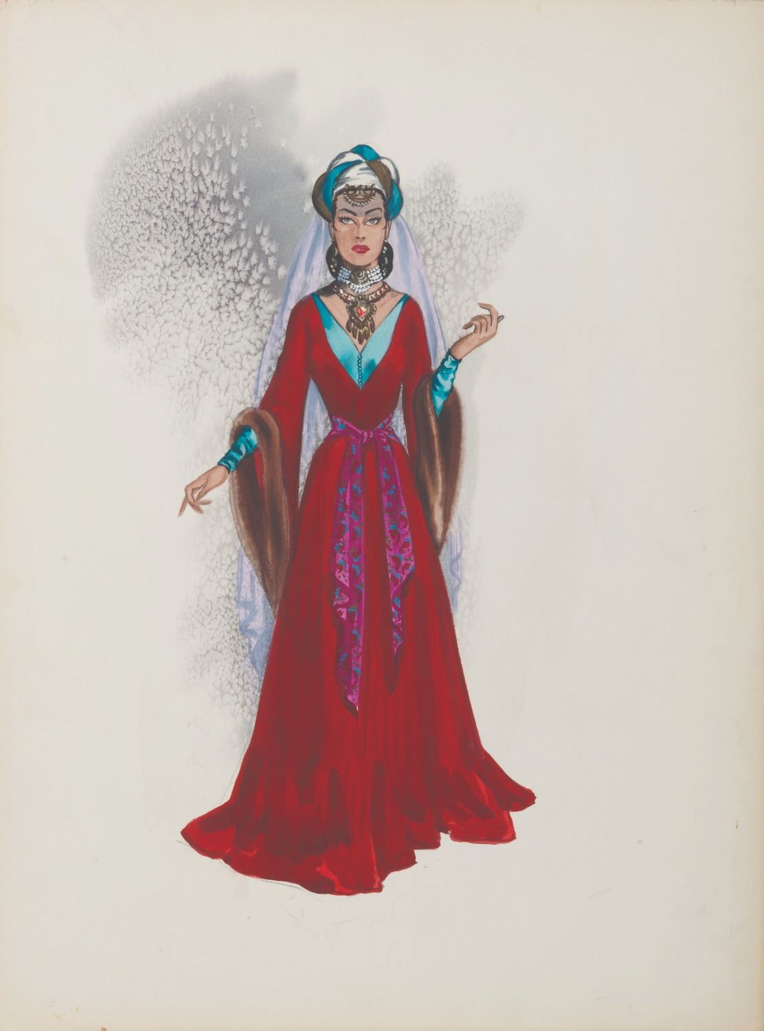 (1950s-1960s) A costume concept for a period piece film. Accomplished in gouache and pencil on artboard, the concept measures 15"x20" and is in very good production-used condition with light wear from age and handling.