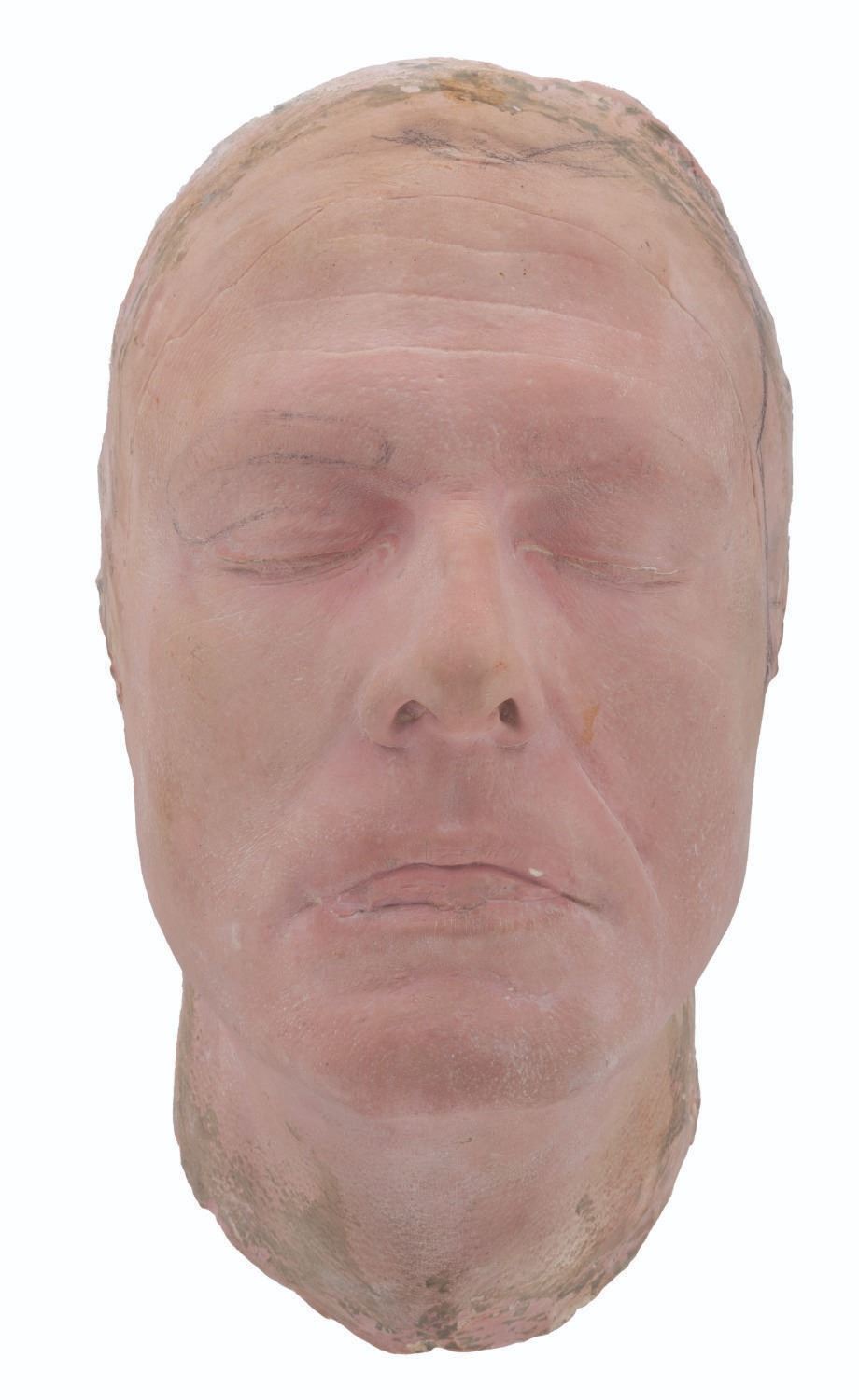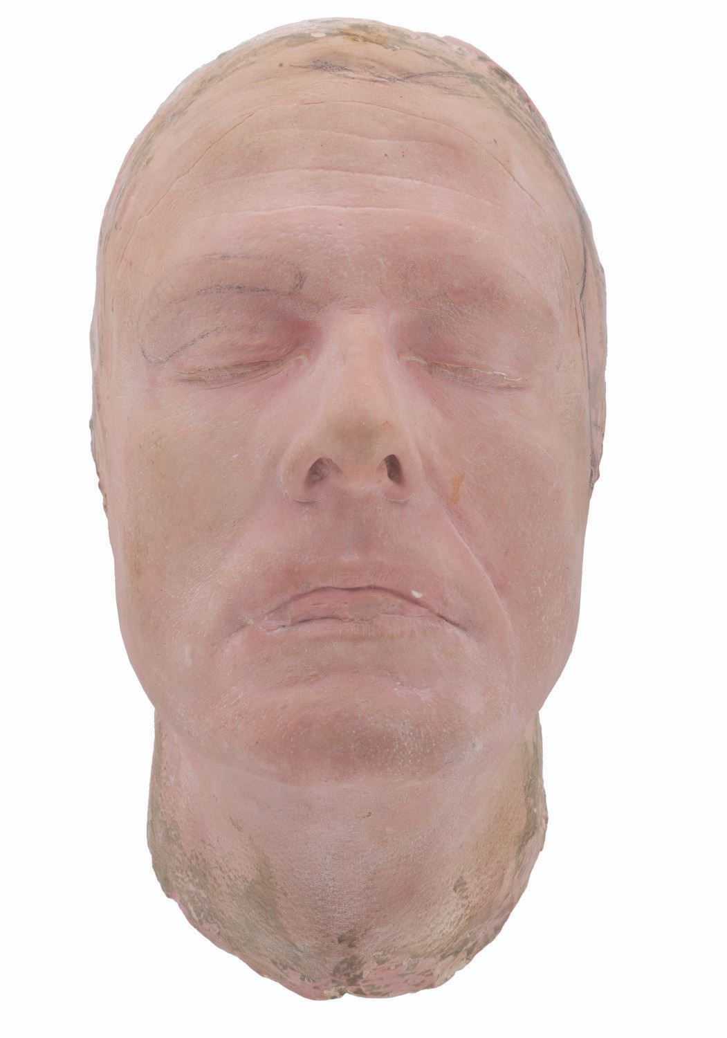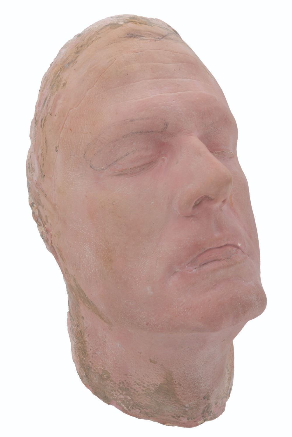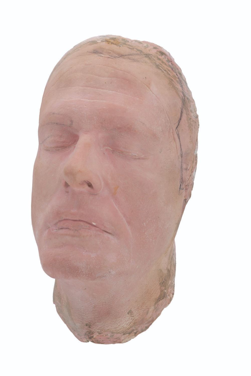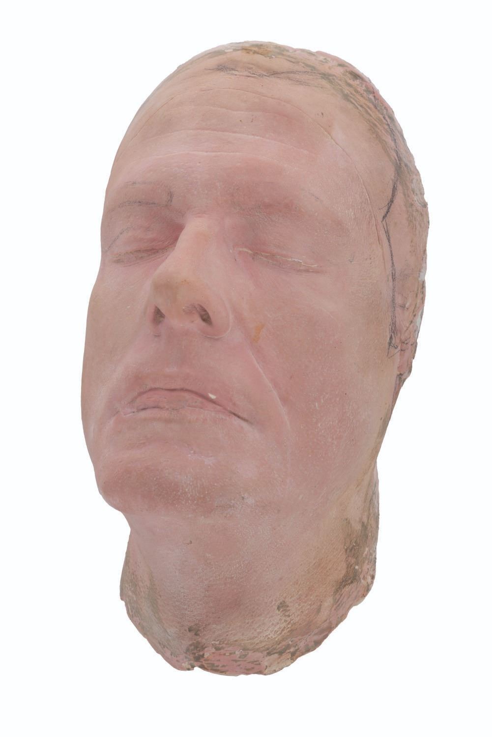 (NBC, 1966) A life mask of actor Robert Culp from “I Spy.” Culp wrote the script for the second season episode “The War Lord,” and alongside his regular role as Kelly Robinson portrayed the Chinese war lord Chuang Tzu. This mask was created by John Chambers to sculpt the extensive facial appliances that transformed Culp’s appearance into the war lord, and it still bears pencil marks and faint clay residue from sculpting those pieces. Measuring 10.5” x 6” x 5”, the life mask is in very good production-used condition, with a tiny white chip to the upper lip.