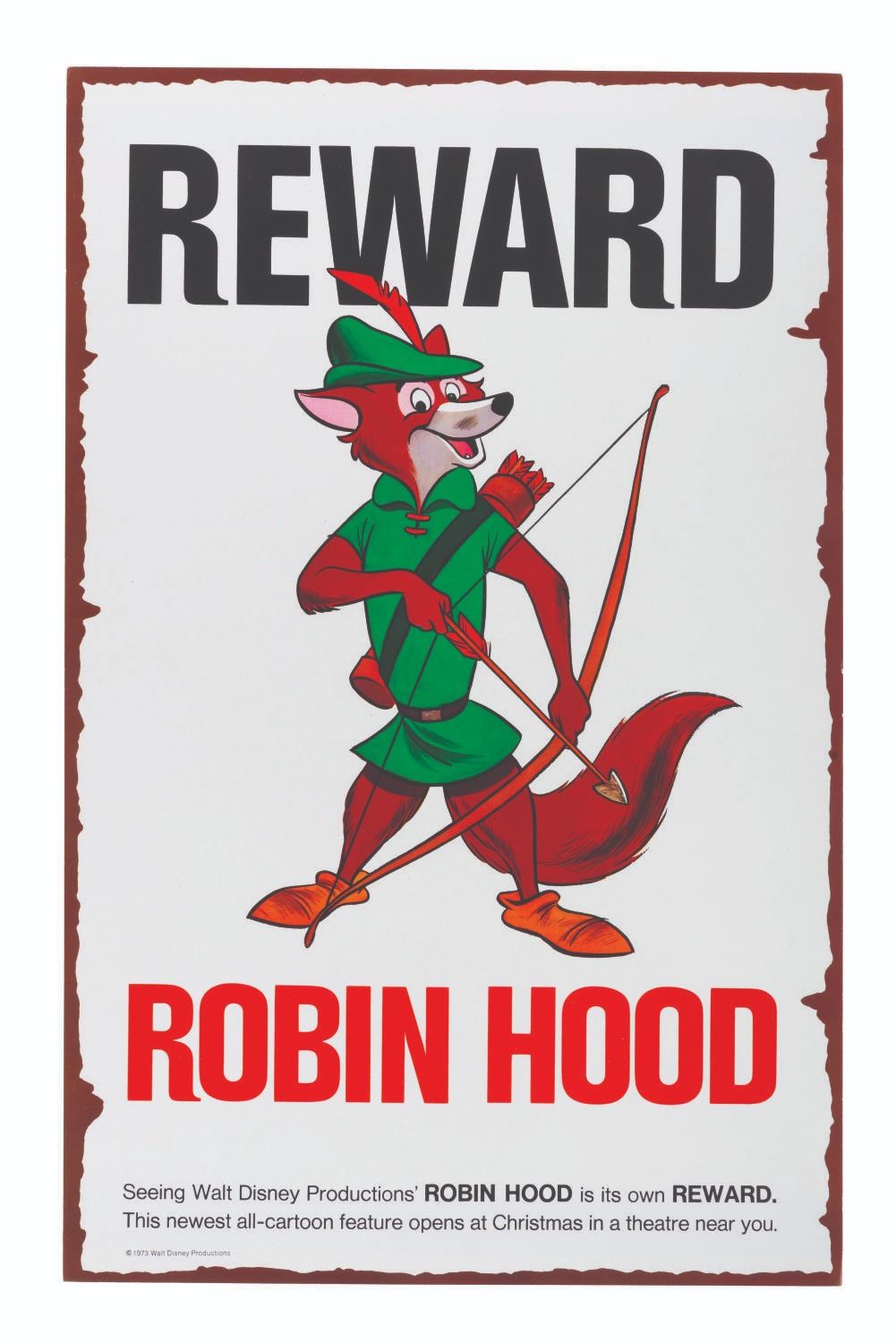 (Disney, 1973) A “Robin Hood” Reward Poster promoting the original theatrical release of the Disney animated feature film. Measuring 11” x 17”, the poster on heavy paper displays in fine condition with very slight wear to corners.