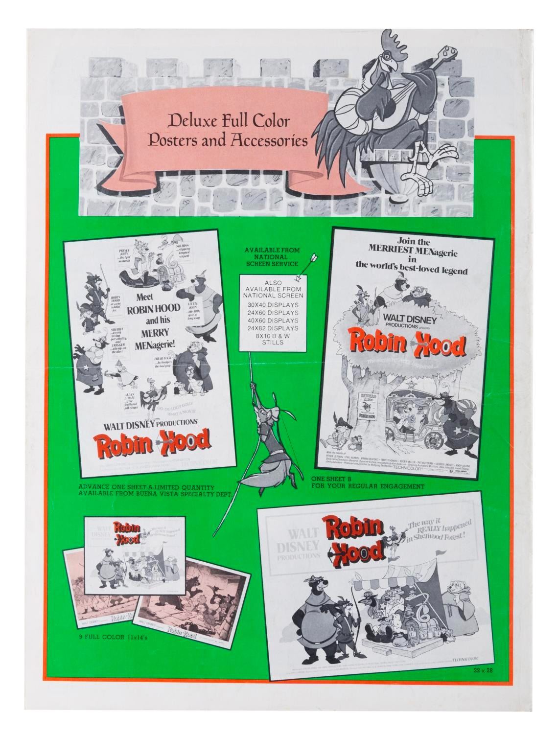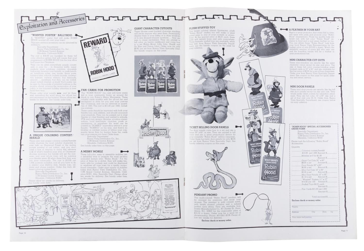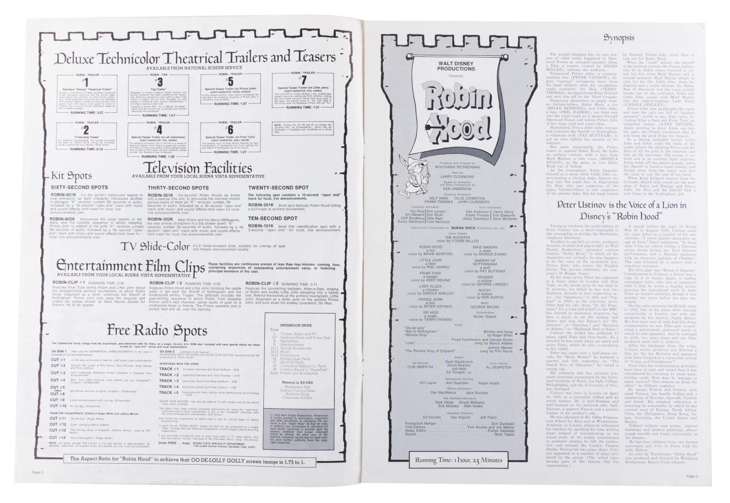 (Disney, 1973) A press and promotional campaign guide for the original theatrical release of “Robin Hood.” Measuring 11.25” x 15”, the booklet is in good condition with creases and wear.