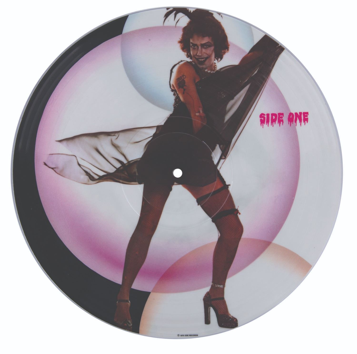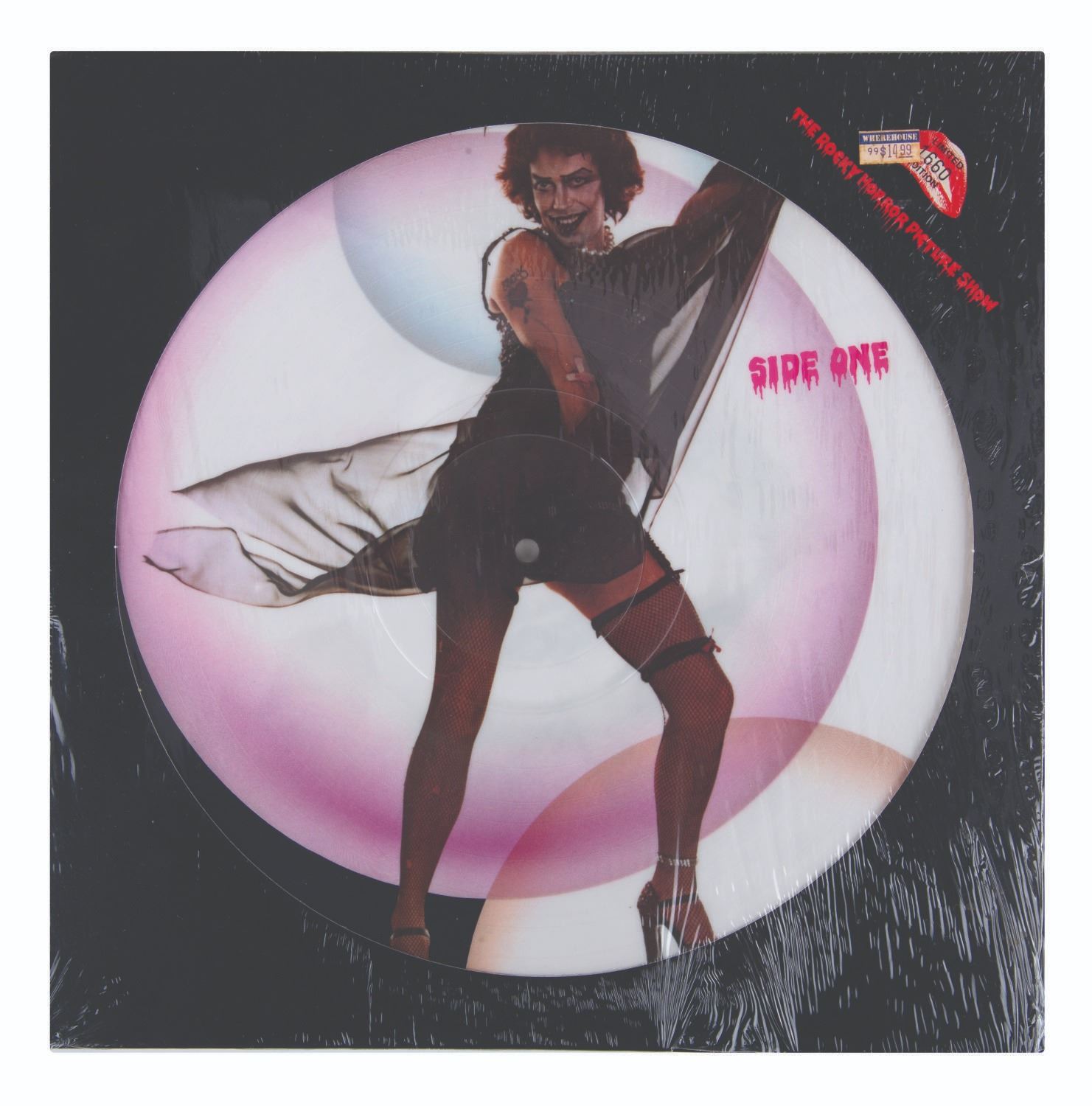 (Ode Records, 1979) A rare, sealed picture disc release of the Rocky Horror Picture Show Soundtrack album. Each side of the disc features an image of Tim Curry as Dr. Frank N. Furter. This release was limited to only 1,660 copies. Measuring 12.25"x12.25", the sealed record is in fine condition.