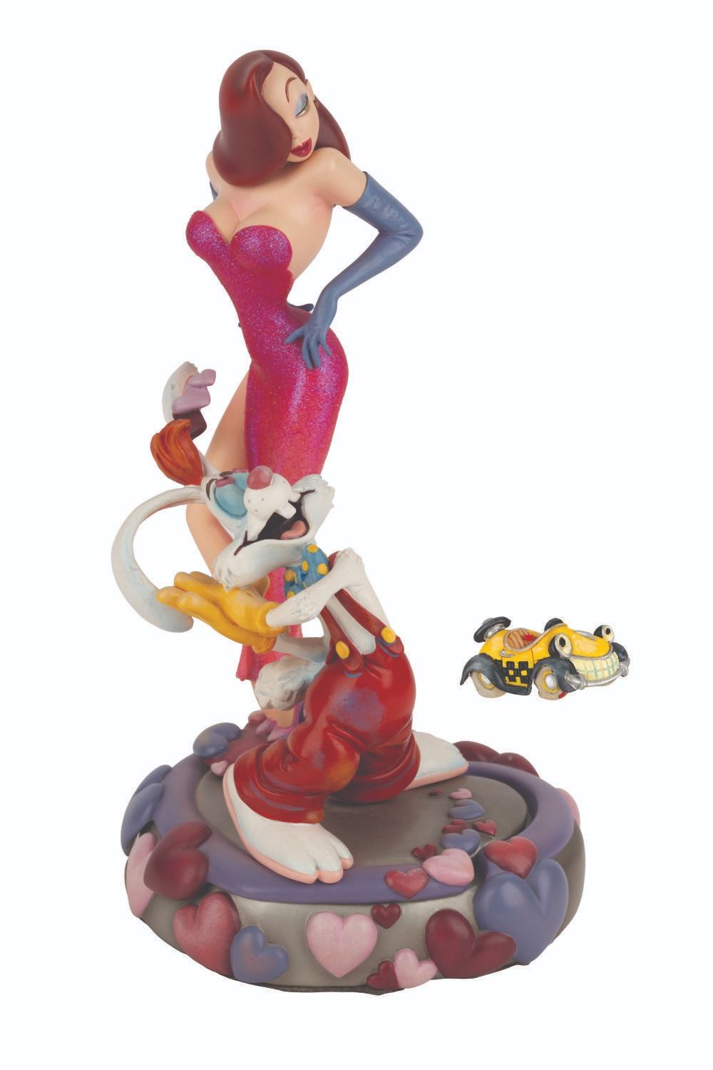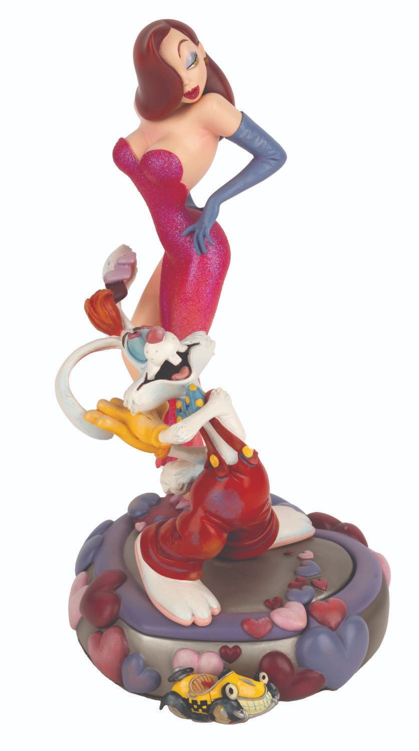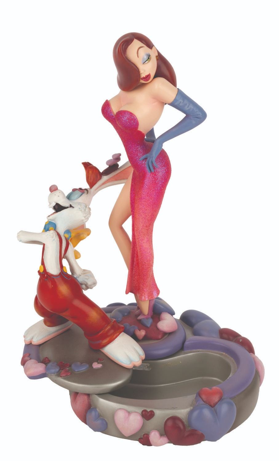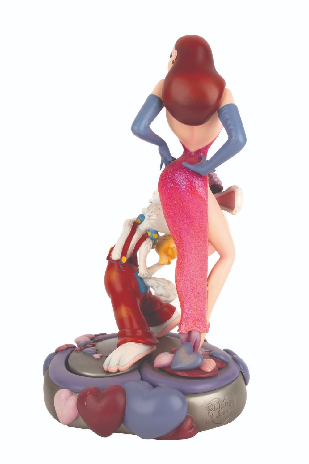 (Markrita, 2001) A Roger and Jessica Rabbit "Hidden Treasures" figurine released through the Art of Disney exclusively at Disney Parks. The figure of Roger cleverly swivels to reveal a trinket space with a resin pin of Benny the Cab inside. Measuring 6" in diameter and 10.5" tall, the figure and pin are in very good condition with light wear from display.
