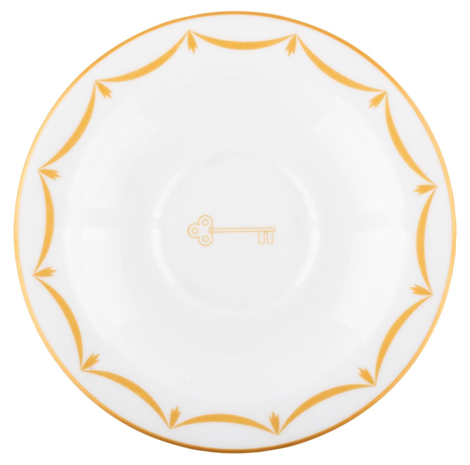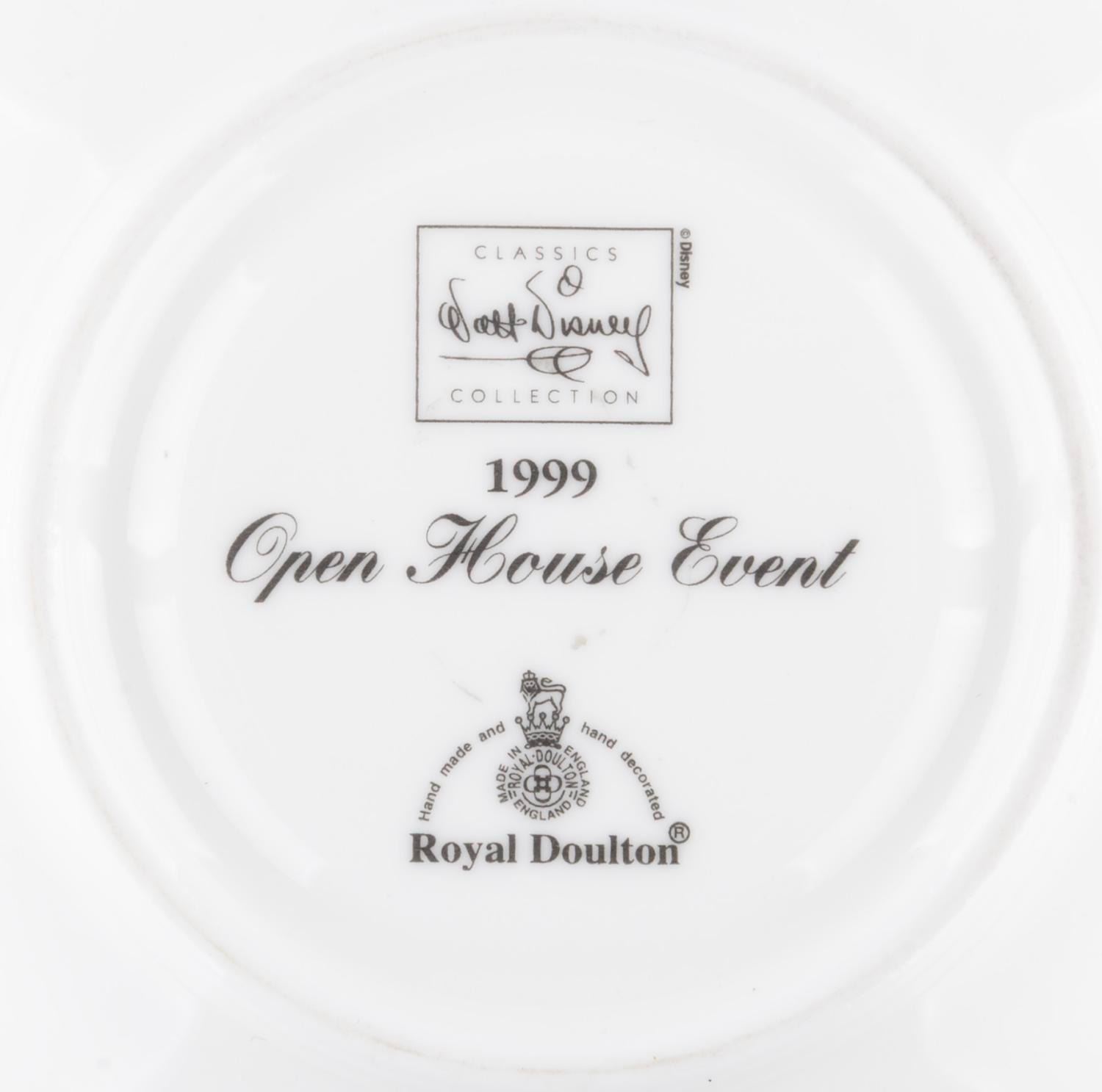 (WDCC/Royal Doulton, 1999) A saucer from an "Open House Event, " designed to go with the Walt Disney Classics Collection "tea For Two" sculpt of Cinderella’s Gus and Jaq in a teacup. Measuring 5.75" in diameter, the saucer is in very good condition.