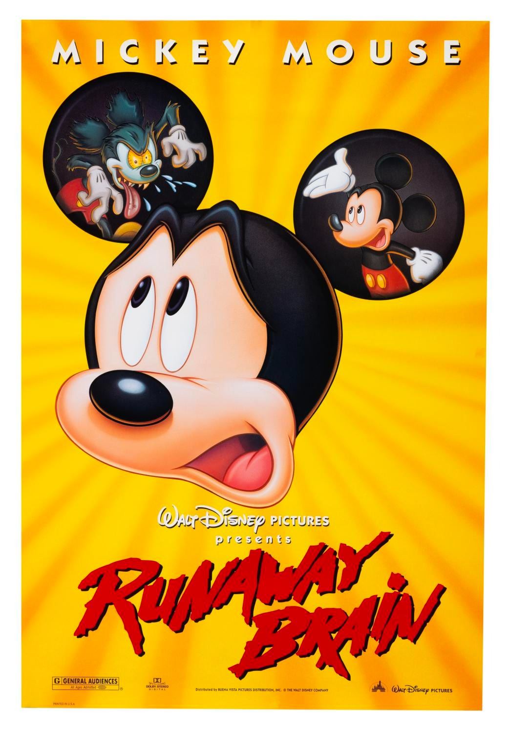 (Disney, 1995) A one-sheet for the Mickey Mouse short "Runaway Brain." Measuring 27" x 40", the poster is in very good condition with very light handling wear.