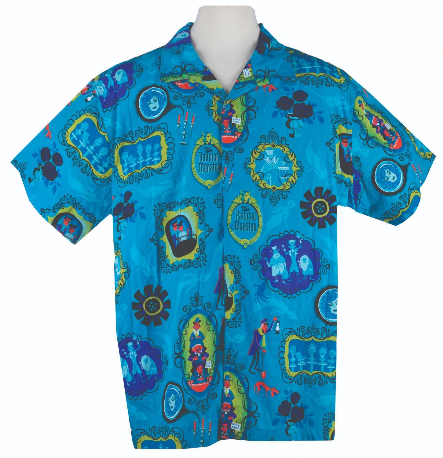 (Disneyland, 2019) A Disney Parks SHAG Haunted Mansion 50th anniversary Aloha Shirt. Measuring a men's size XXXL (40" wide x 36" tall), the shirt is in fine condition.