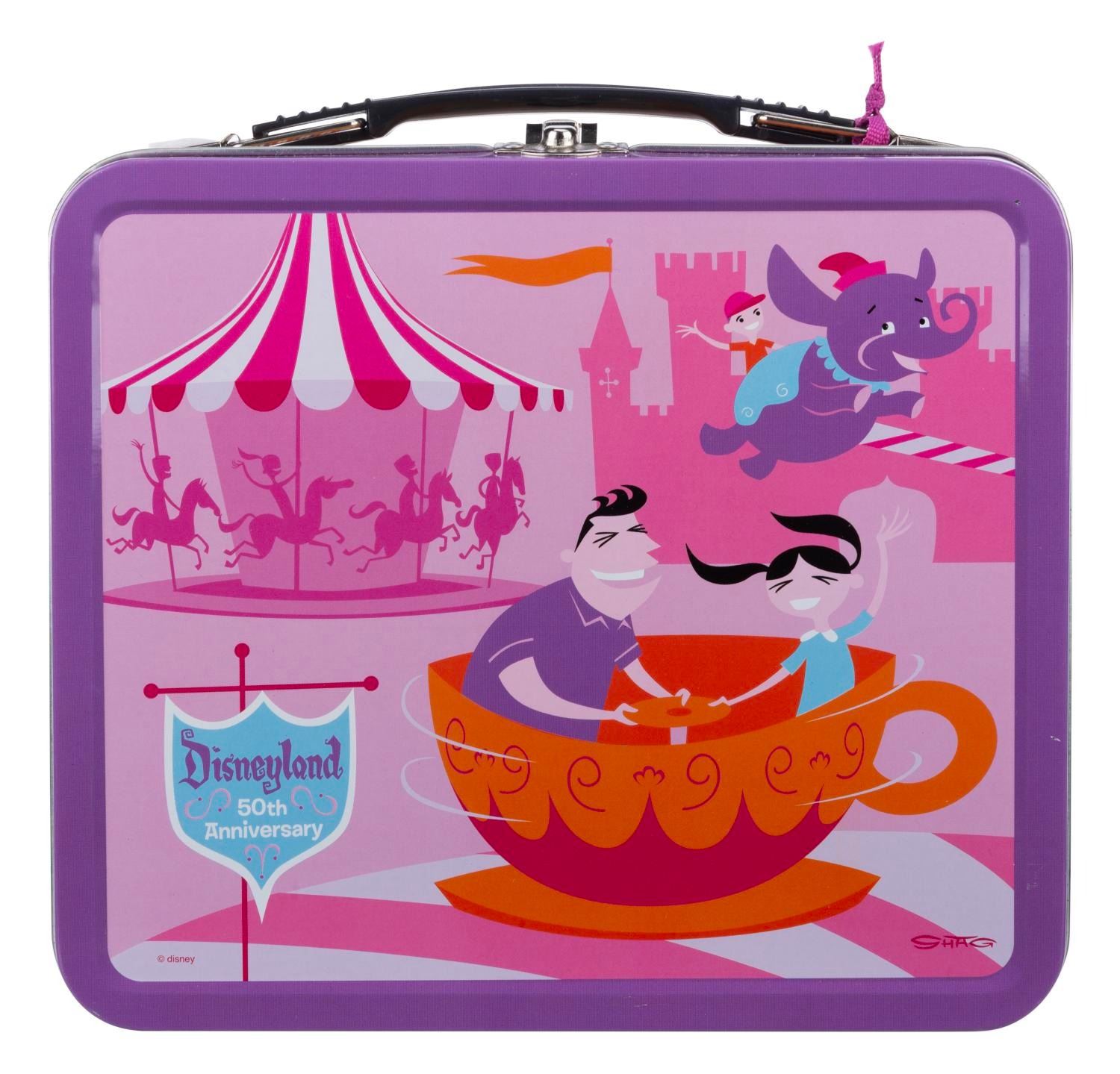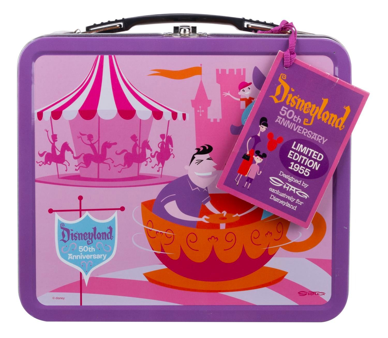(Disneyland, 2005) A SHAG Disneyland 50th anniversary lunchbox. Measuring 8.25"x3"x7.5", this lunchbox is in fine condition with its original product tag attached.