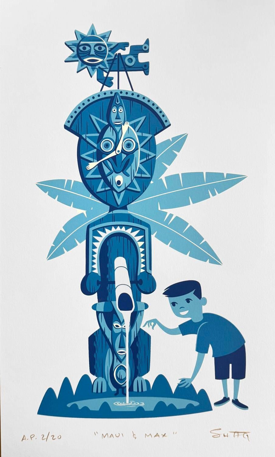 (Disneyland, 2013) A signed"Maui and Max" print by SHAG for the 50th anniversary of Walt Disney’s Enchanted Tiki Room. SHAG signed the bottom right of the artist’s proof, numbered 2 of only 20. Measuring 8" x 14", the print is in fine condition.