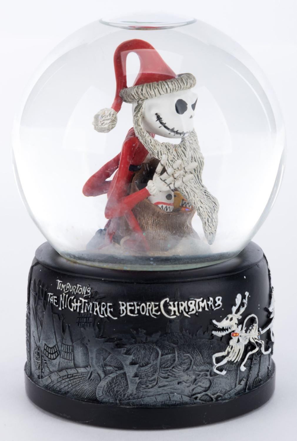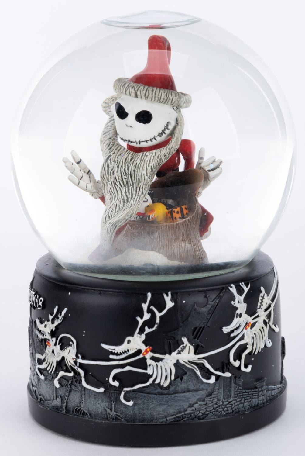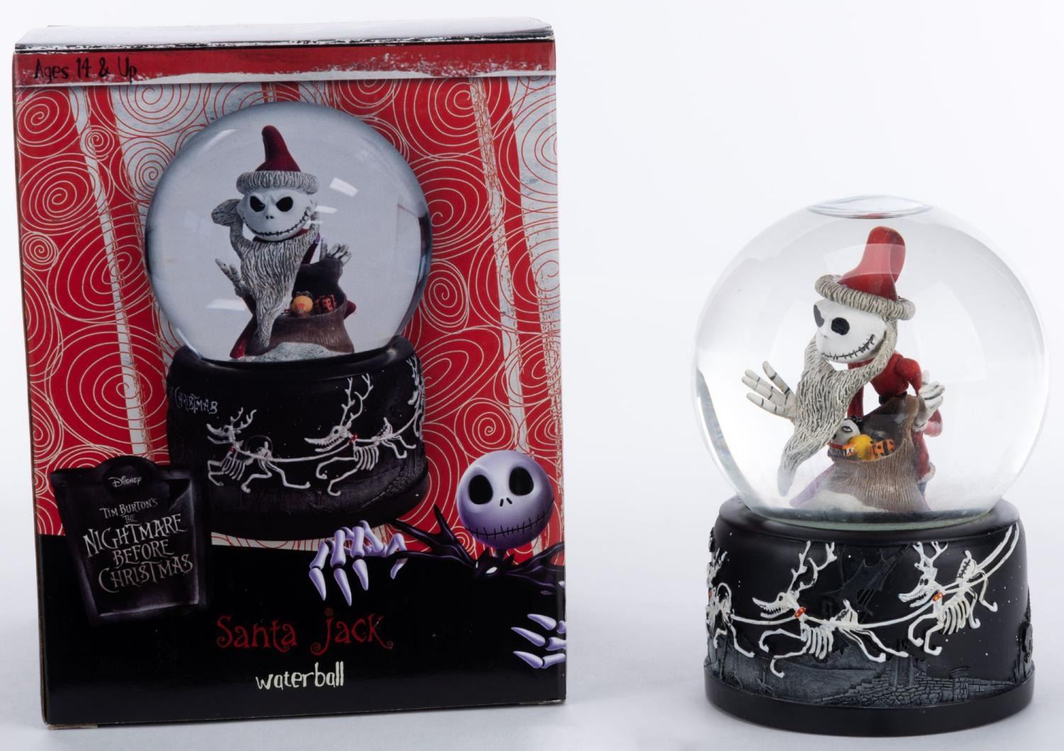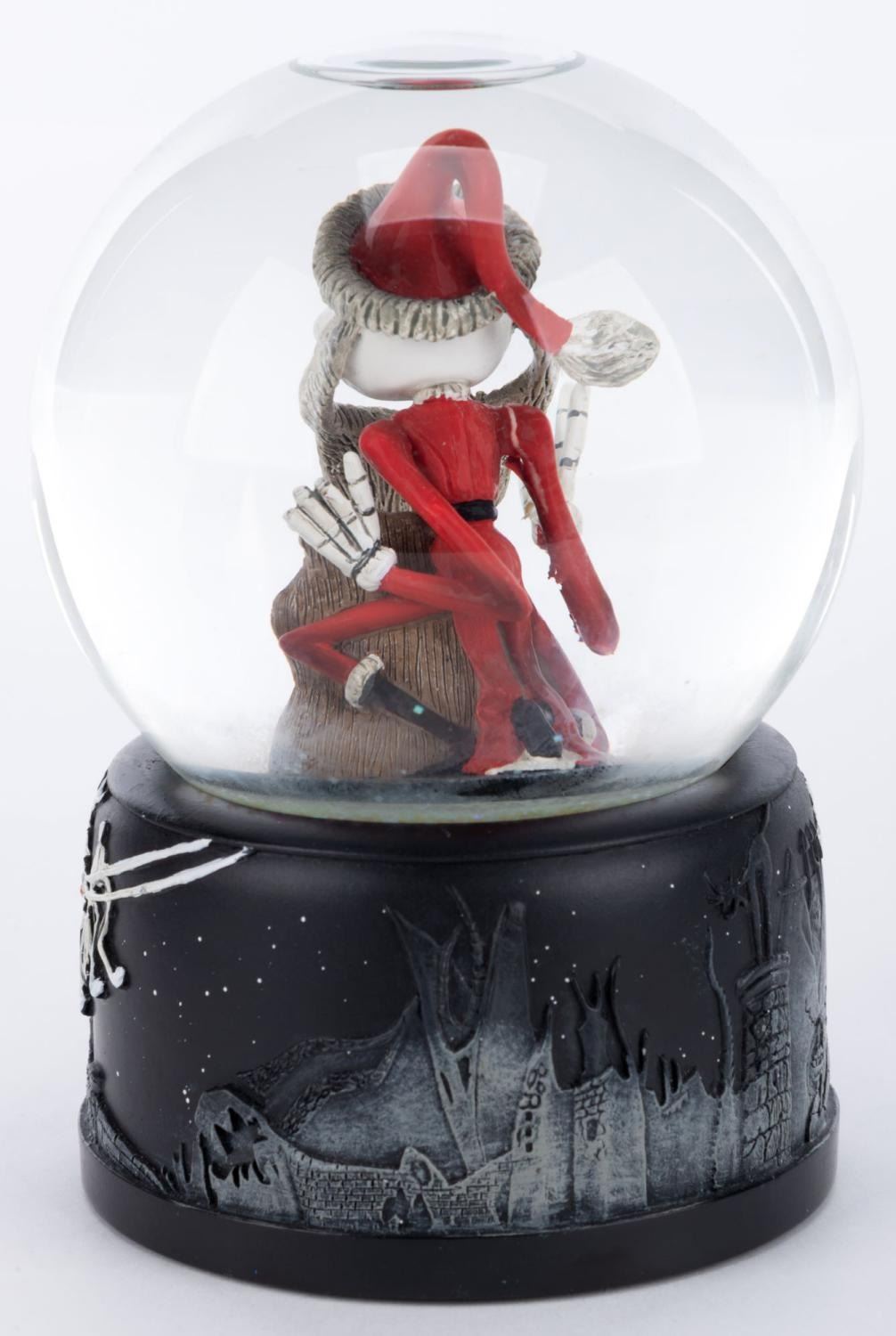 (NECA, 2009) A snow globe of Jack Skellington as "Sandy Claws" from "Tim Burton's The Nightmare Before Christmas." Measuring 4" in diameter and 5.5" tall, the snow globe is in fine condition and comes with the original 5.5" x 5.75" x 7.5" box.