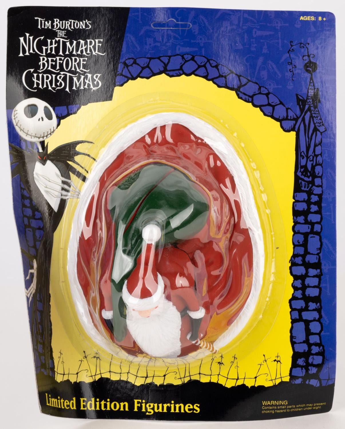 (NECA, 1990s-2000s) An action figure of Santa Claus also known as "Sandy Claws" from "Tim Burton's The Nightmare Before Christmas." The action figure was released in an unnumbered limited edition of 5000. Measuring 5.5" x 7.5" and 5" tall, the figure is in fine condition and comes sealed within the original 10.5" x 5" x 13" packaging.