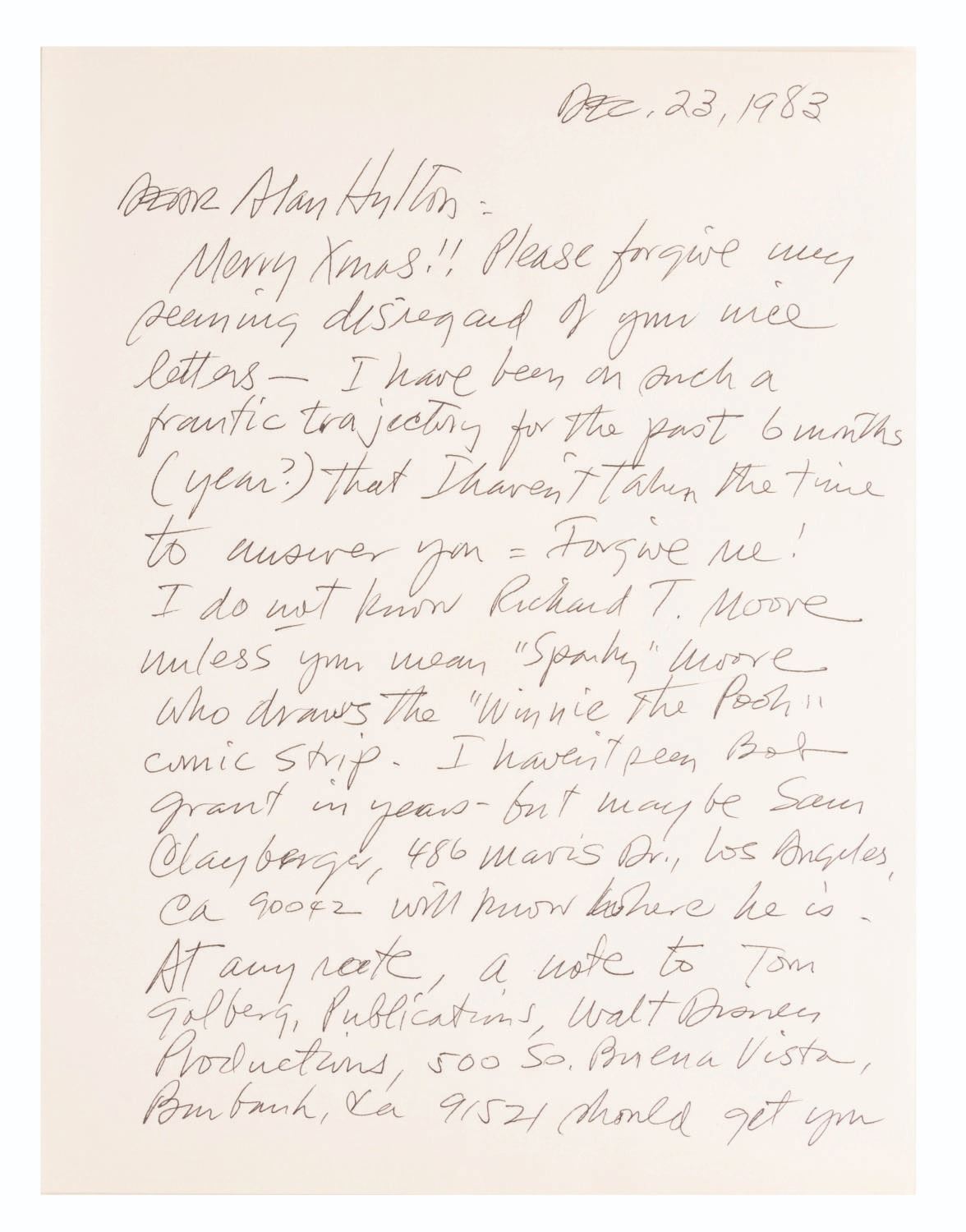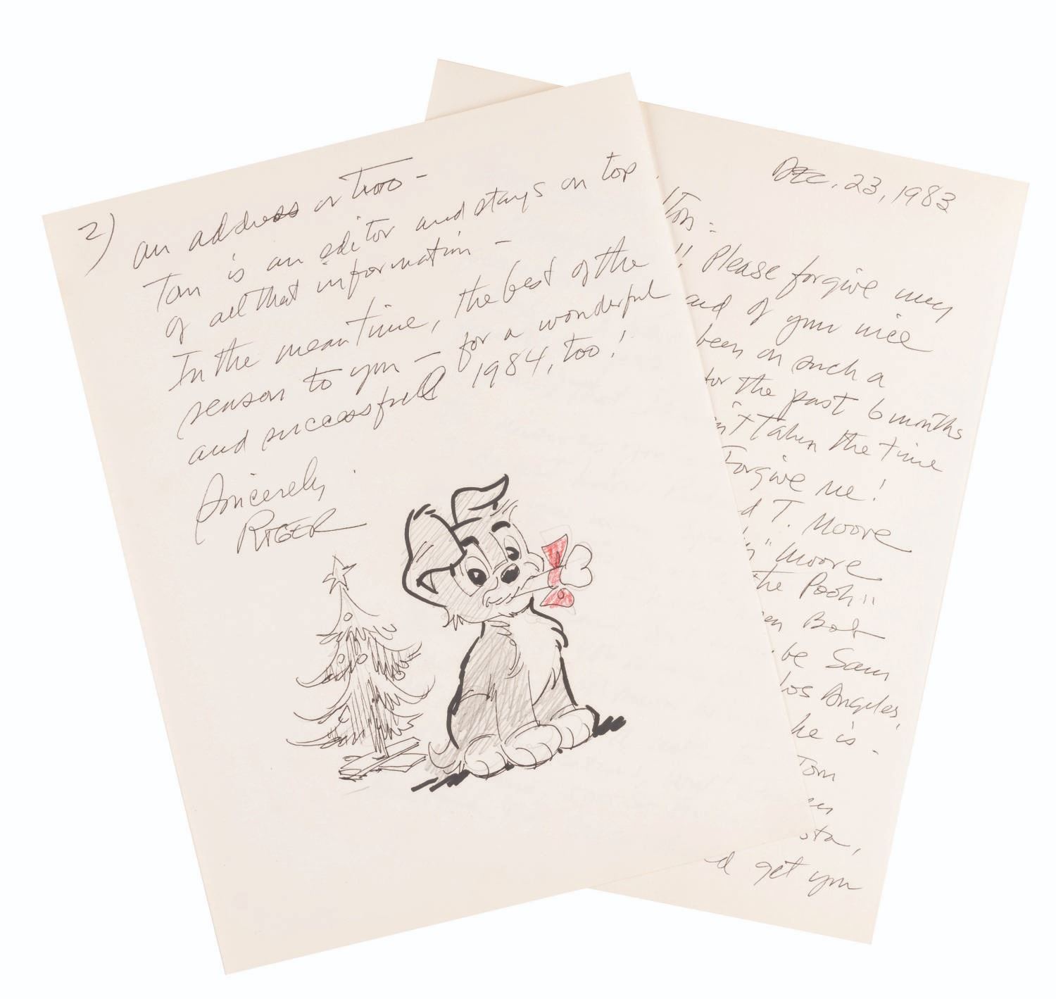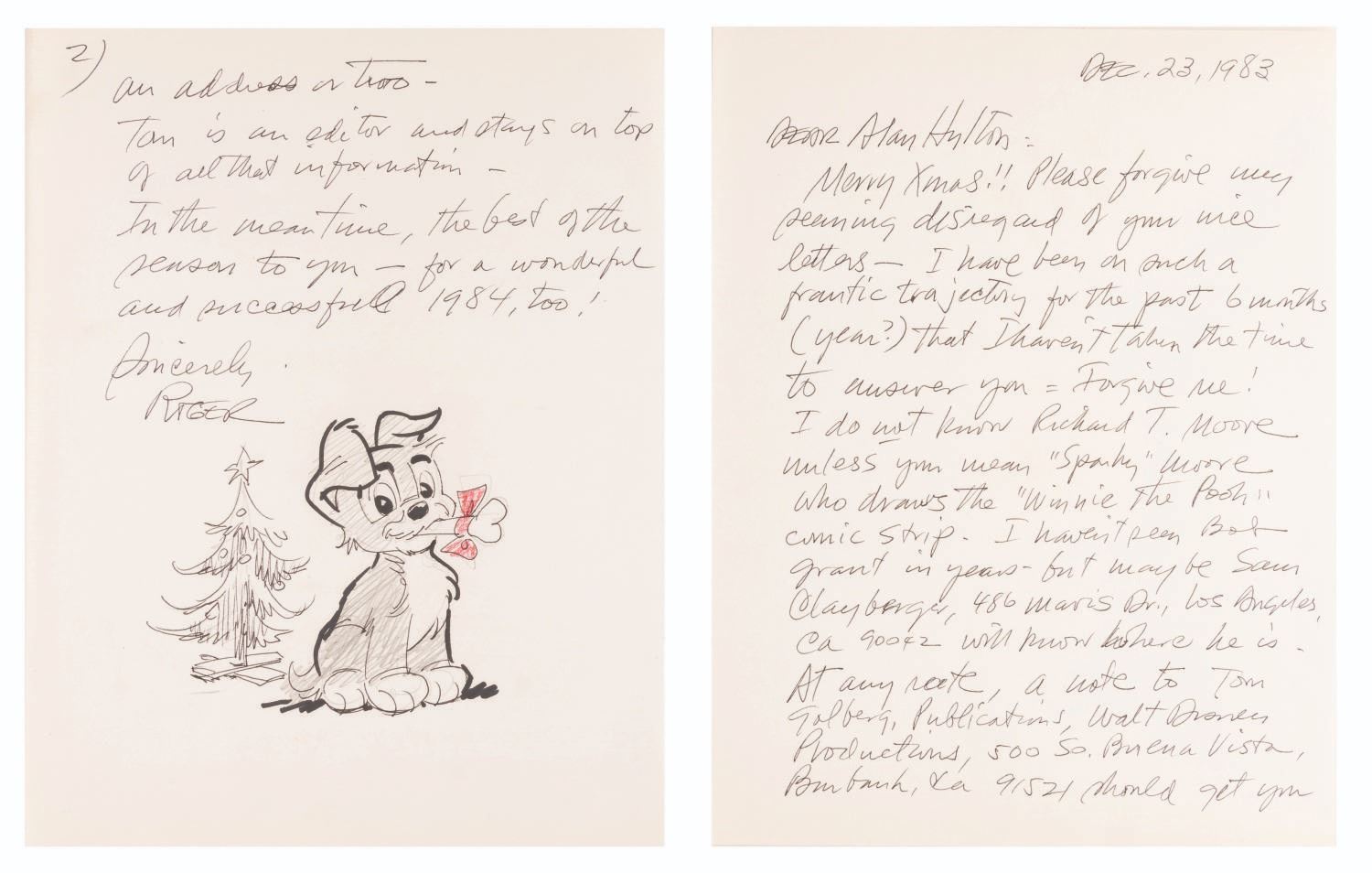 (Armstrong, 1983) A letter from Disney artist Roger Armstrong with a drawing of Scamp, from the popular comic strip. With an image size of 4.25" x 4.75" on 8.5" x 11" paper, the drawing is in very good condition.
