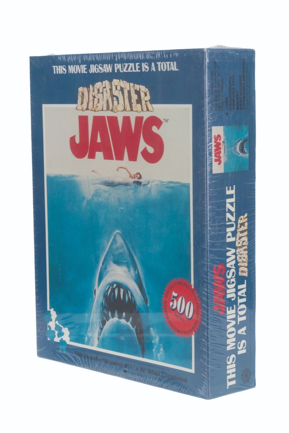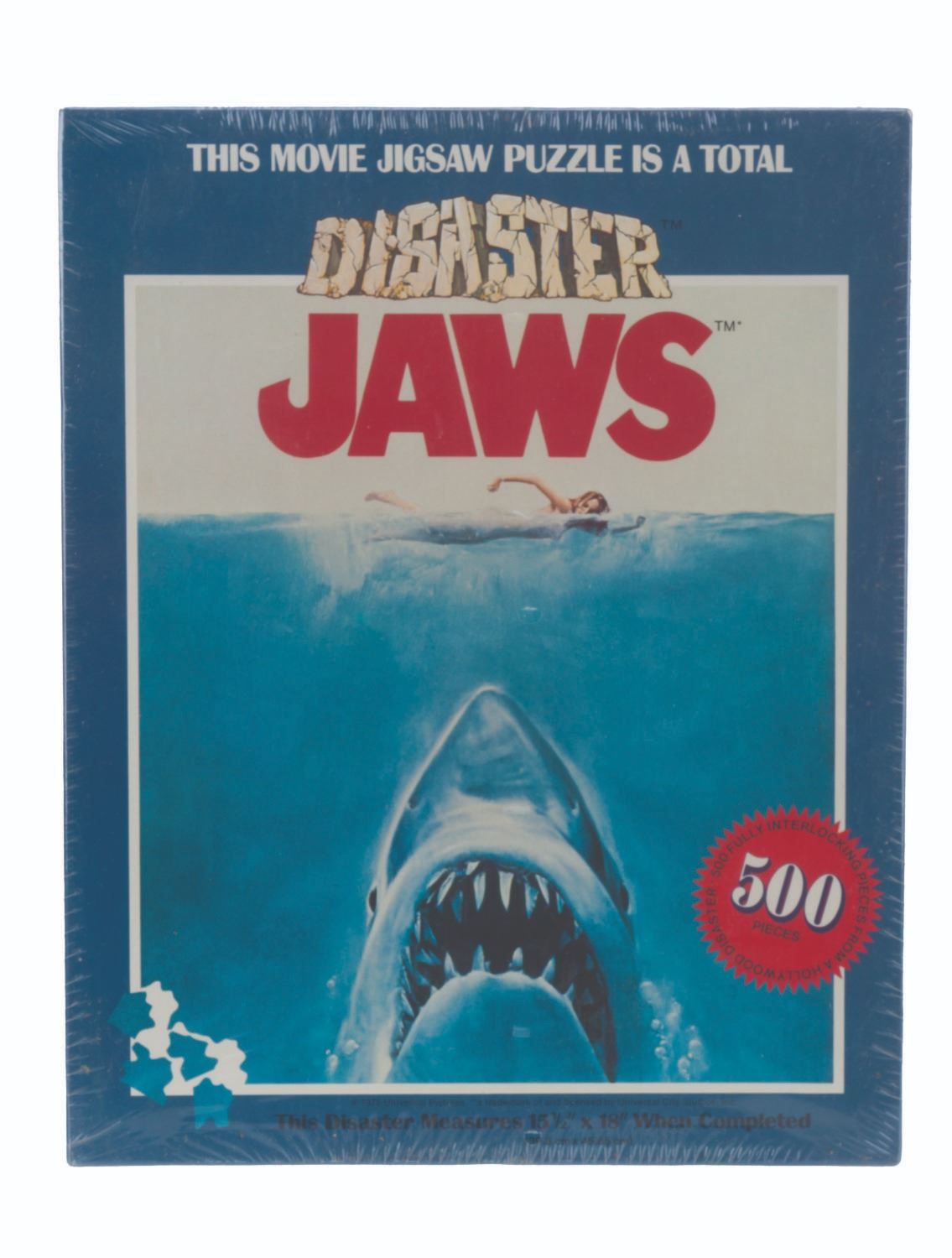 (The Paper Pros Inc., 1976) A sealed "Jaws” Disaster Jigsaw Puzzle of the film’s iconic poster. Measuring 15.5” x 18” when completed, the 500-piece puzzle is in presumed fine condition in the original box.