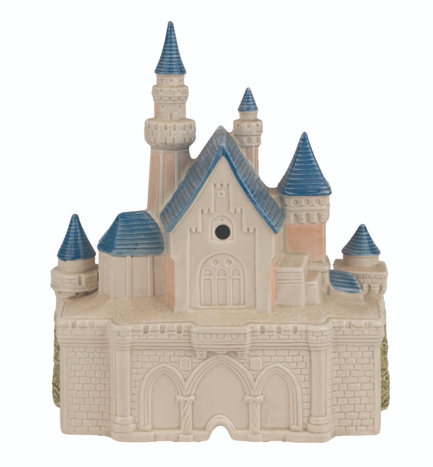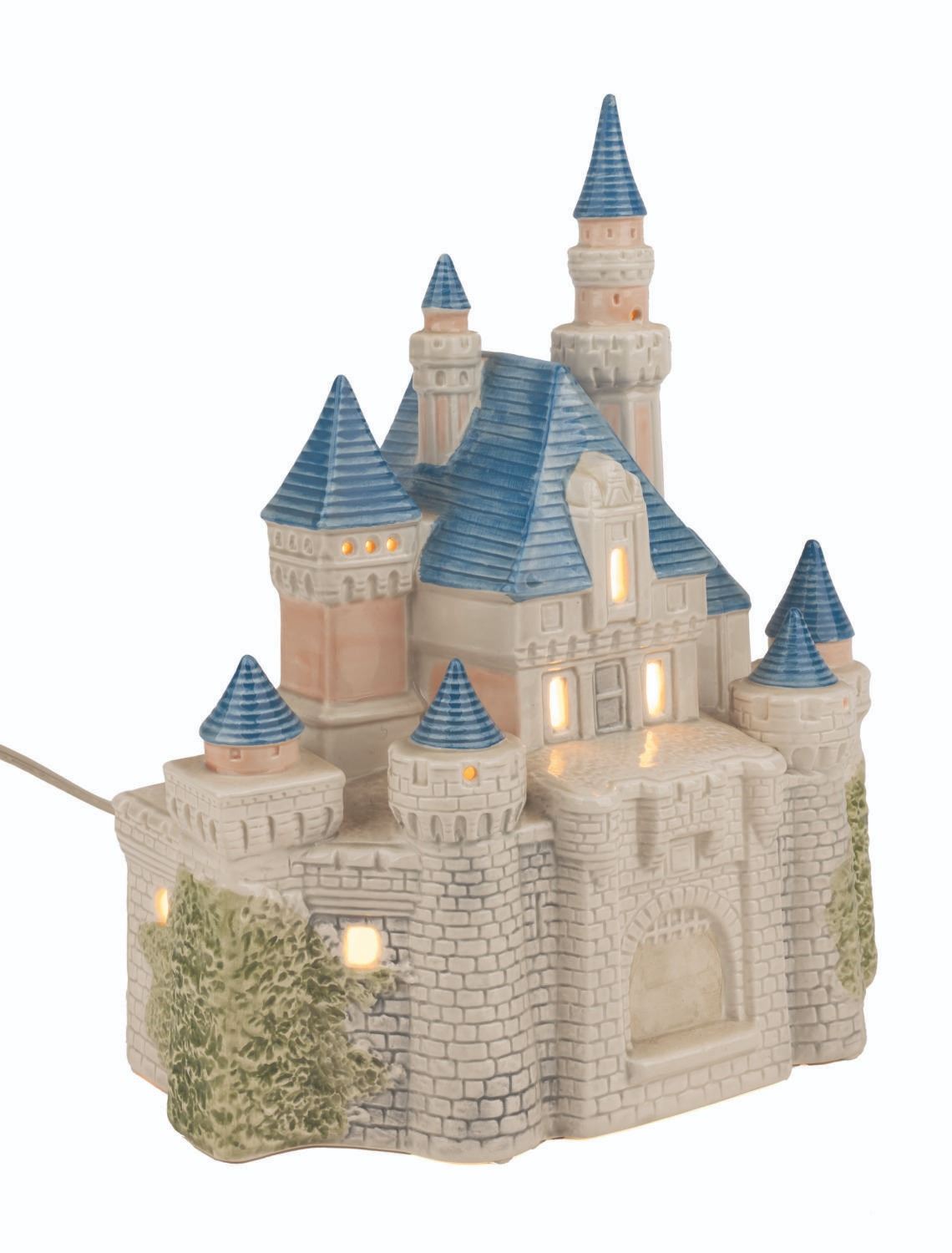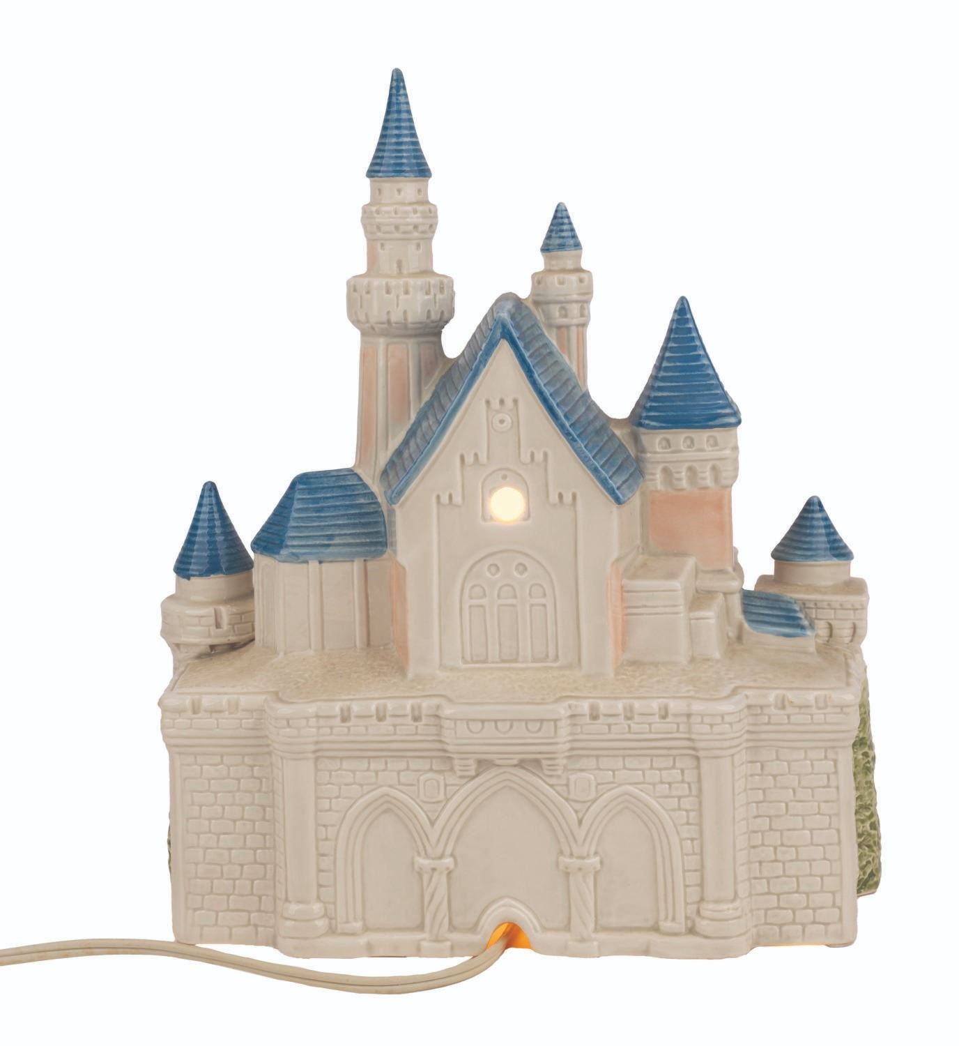 (Sears, 1988) A "Disney Magic" light-up Sleeping Beauty Castle ceramic statue. Measuring 9" x 11", the castle is in very good working condition with light paint wear on the drawbridge and spires.