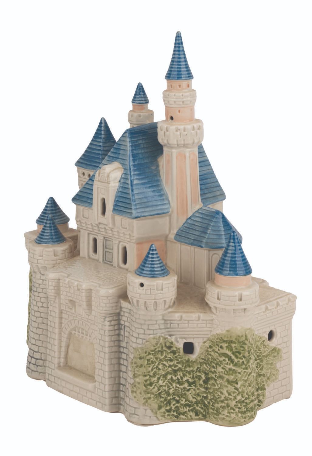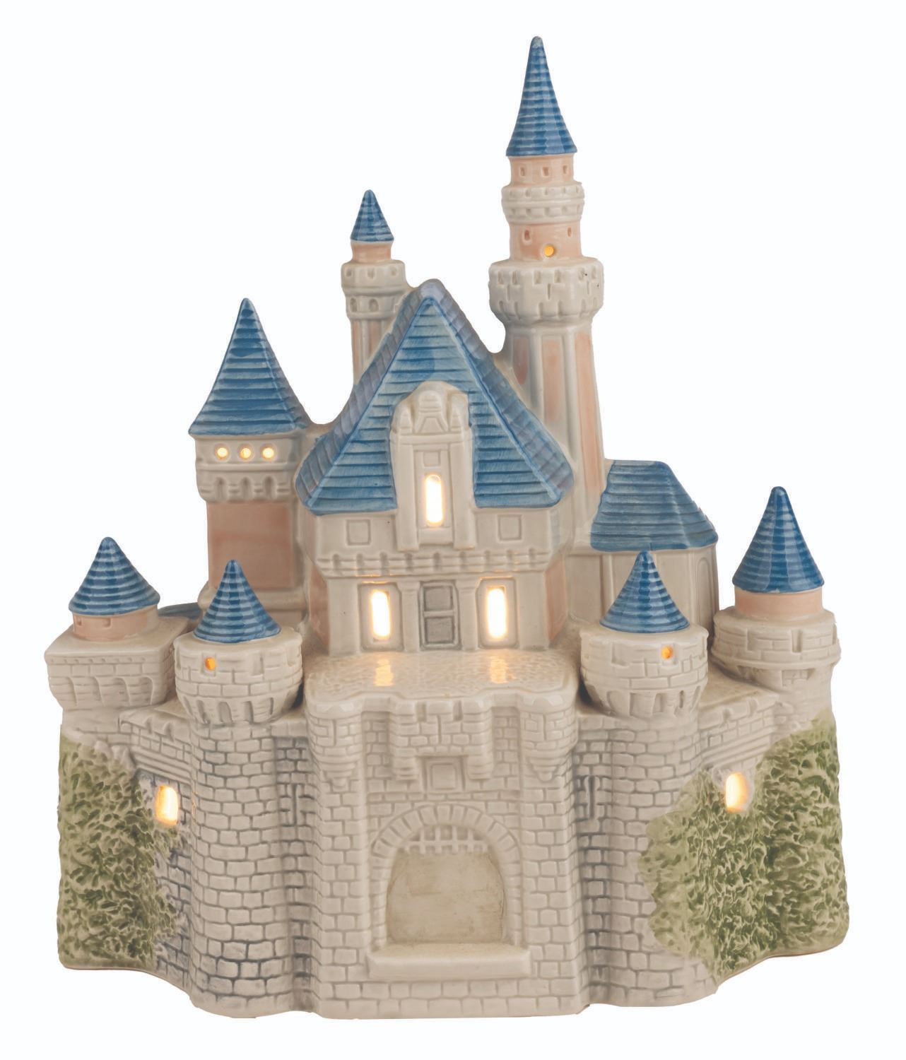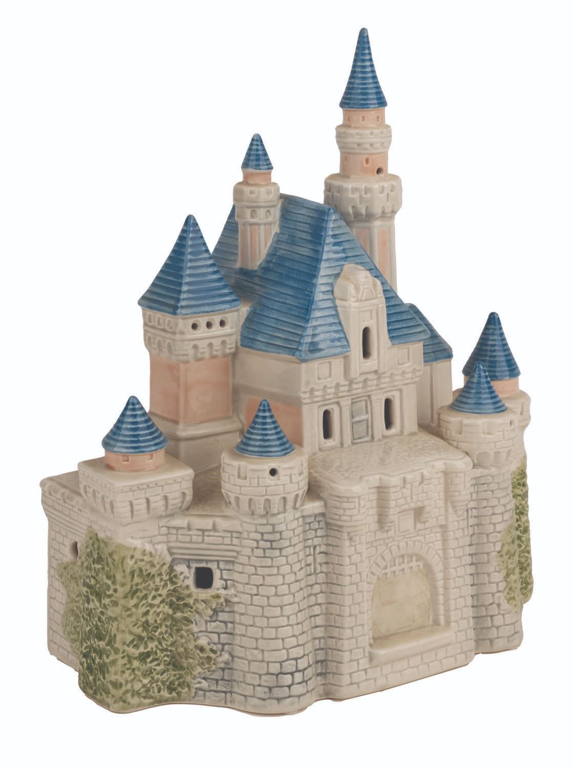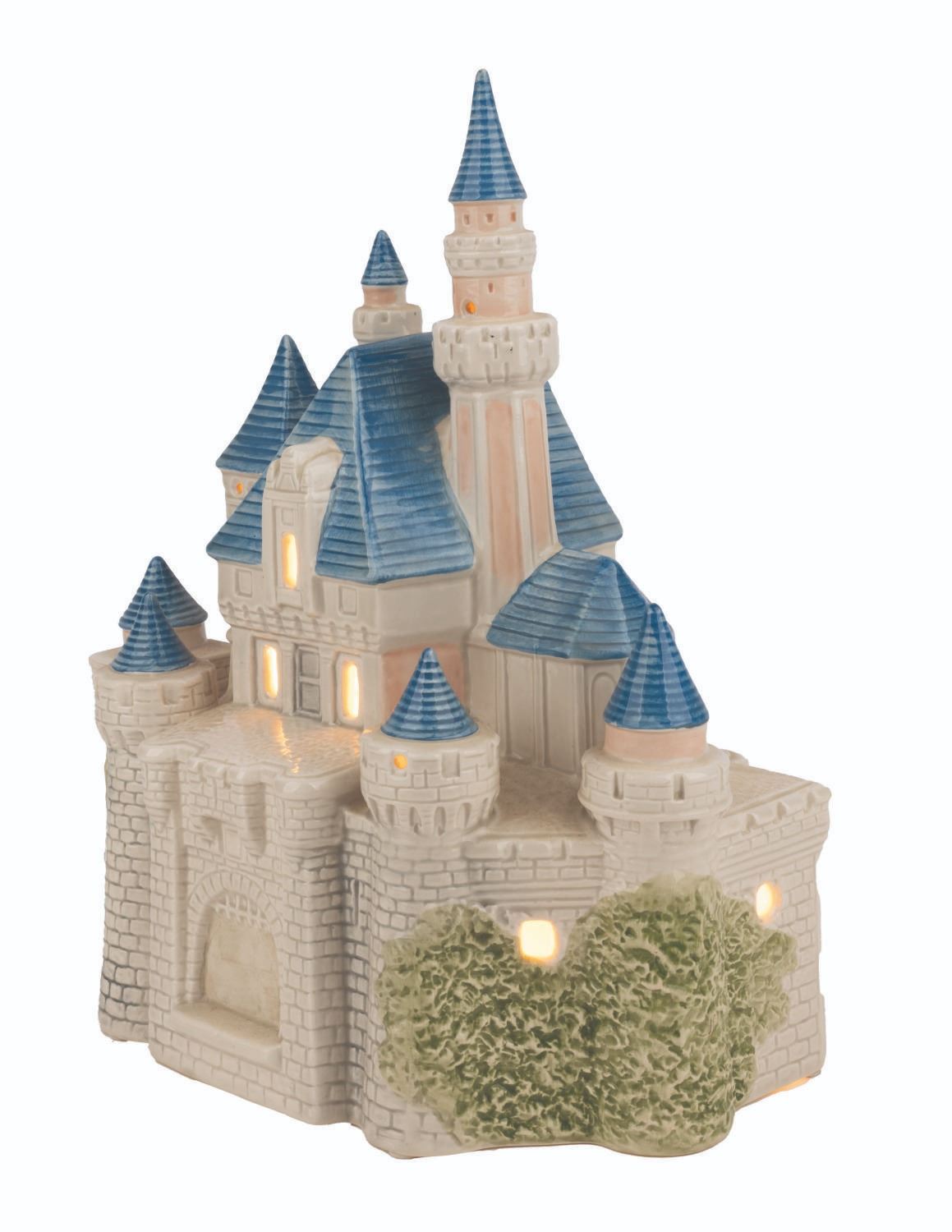 (Sears, 1988) A "Disney Magic" light-up Sleeping Beauty Castle ceramic statue. Measuring 9" x 11", the castle is in very good working condition with light paint wear on the drawbridge and spires.