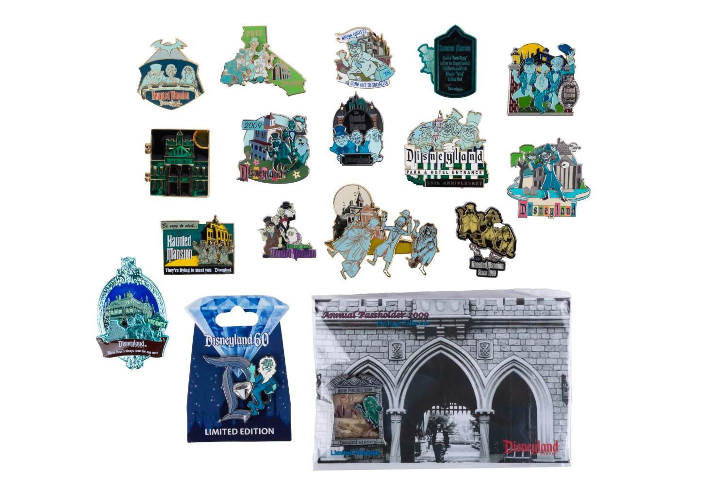 (Disneyland, 2005-13) A collection of 17 Disneyland Hitchhiking Ghosts pins including limited editions, Imagineering, Cast Member, Passholder Exclusives, a First Release, a Surprise, and a signed Pinbassador Inspirations pin by Timm Lundeen. Each pin is in very good condition with few signs of wear from age or handling.