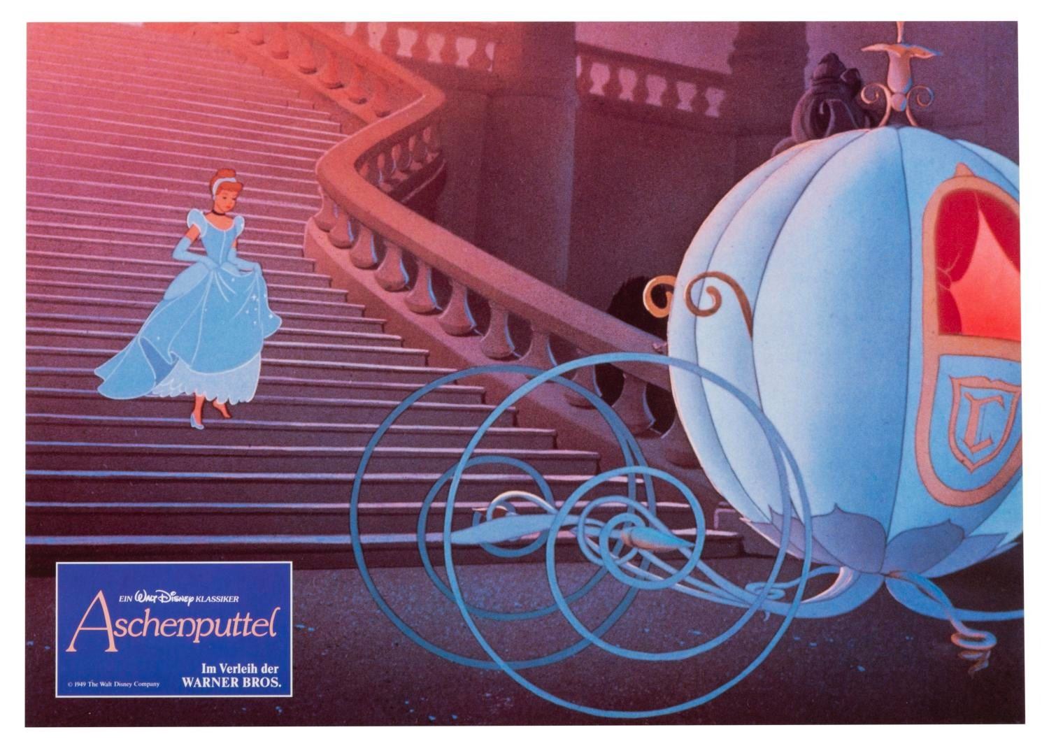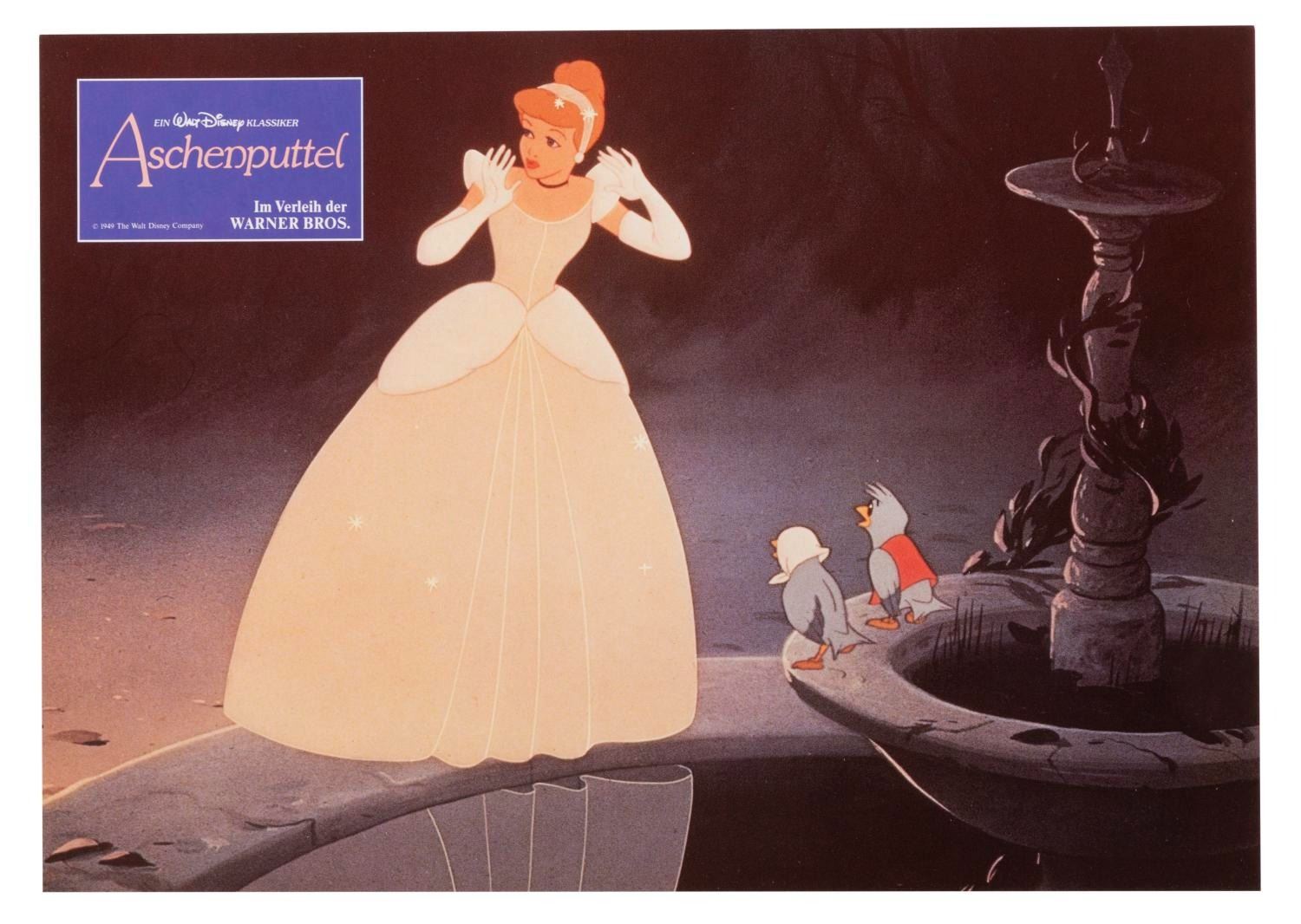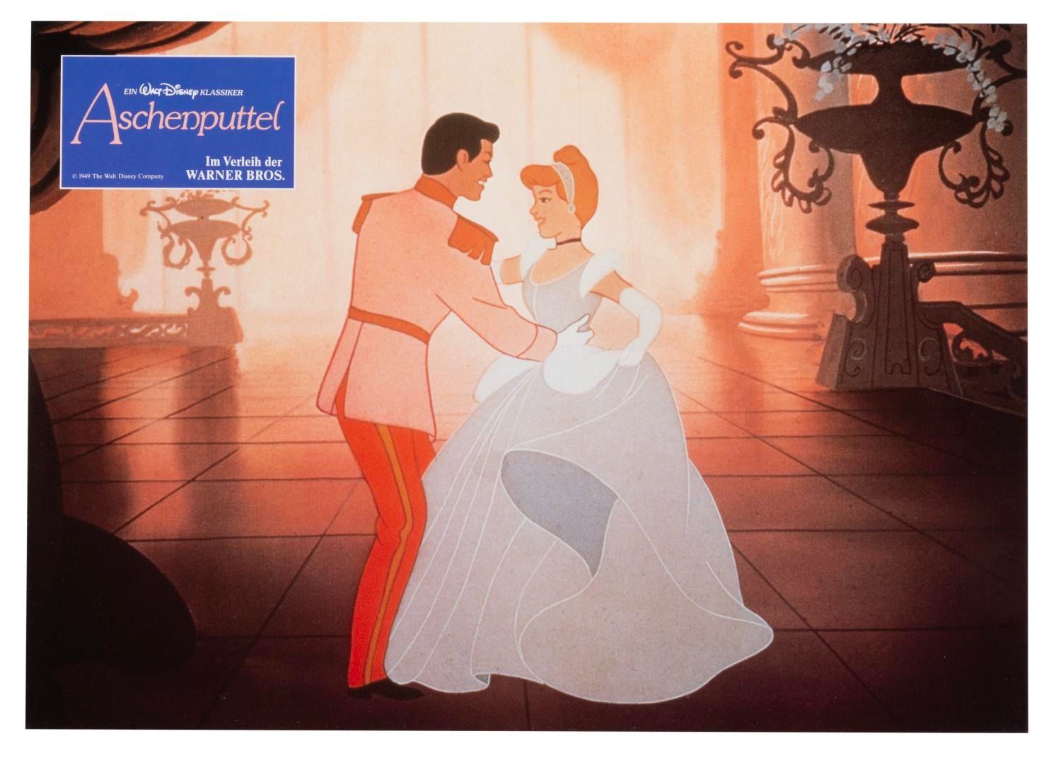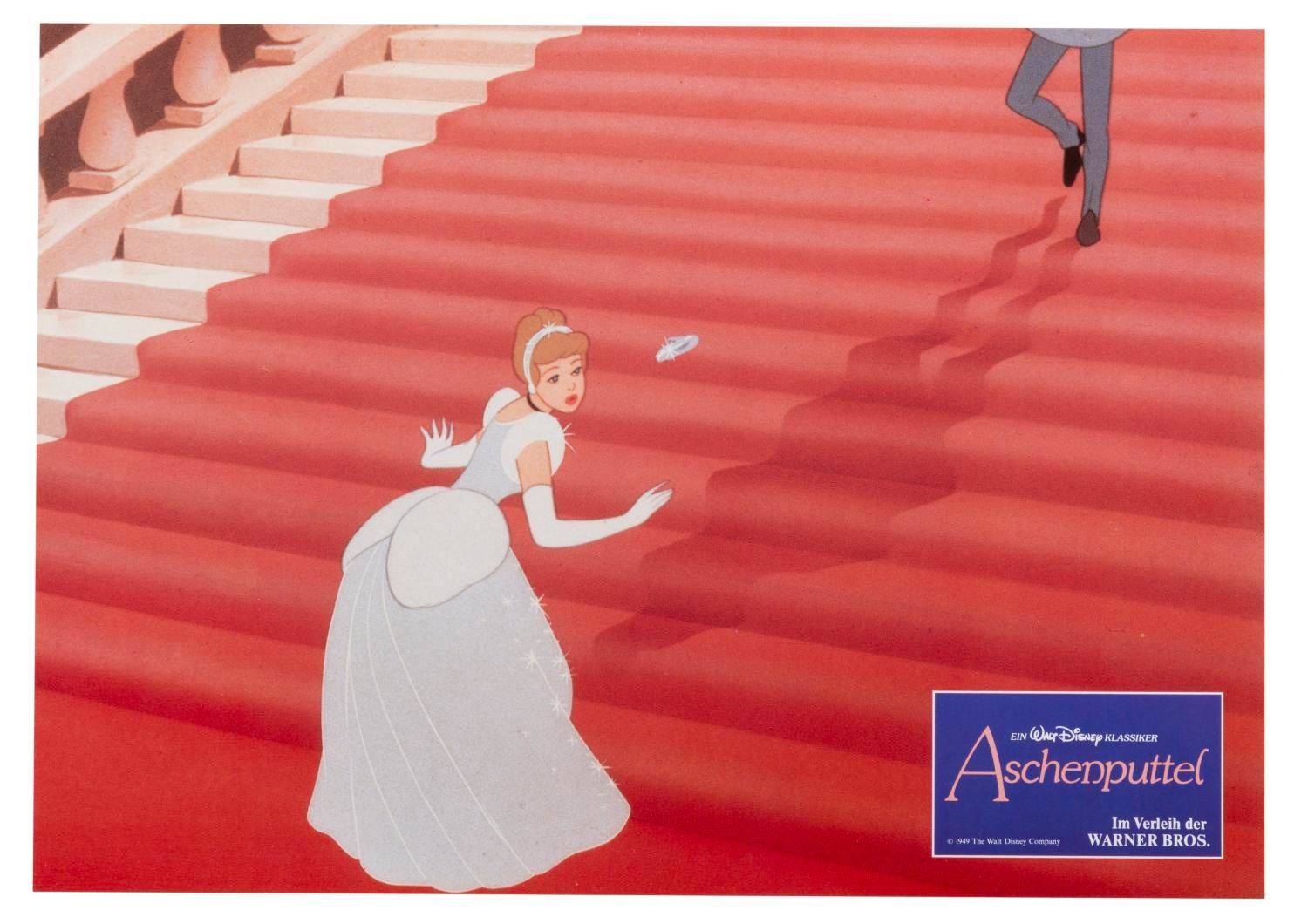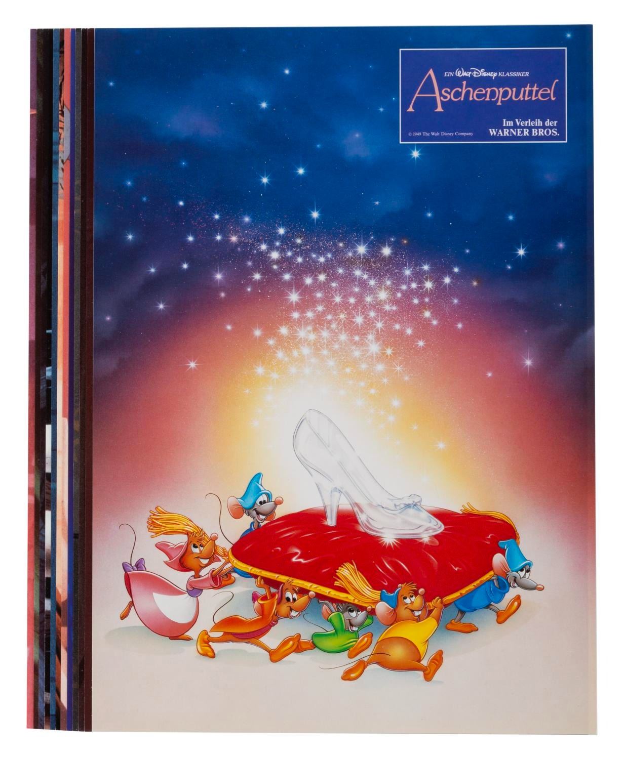 (Disney, 1987) A set of 12 lobby cards for the 1987 re-release of "Cinderella" in Germany, with the original envelope. Measuring 8.25" x 11.25", the cards are in fine condition.