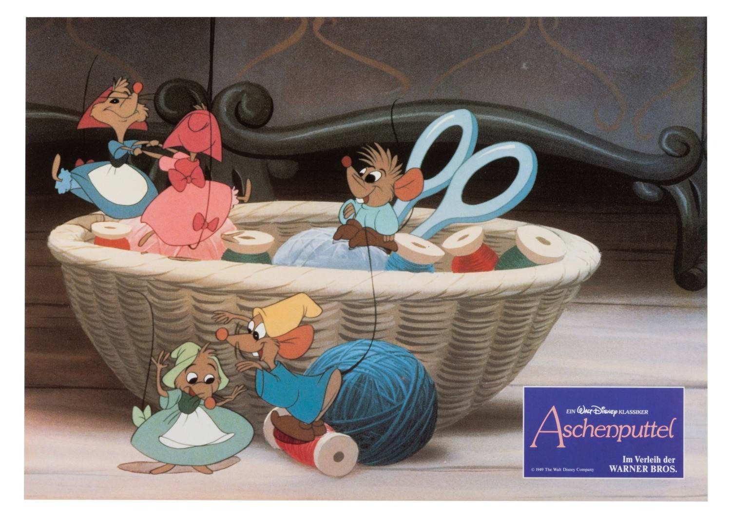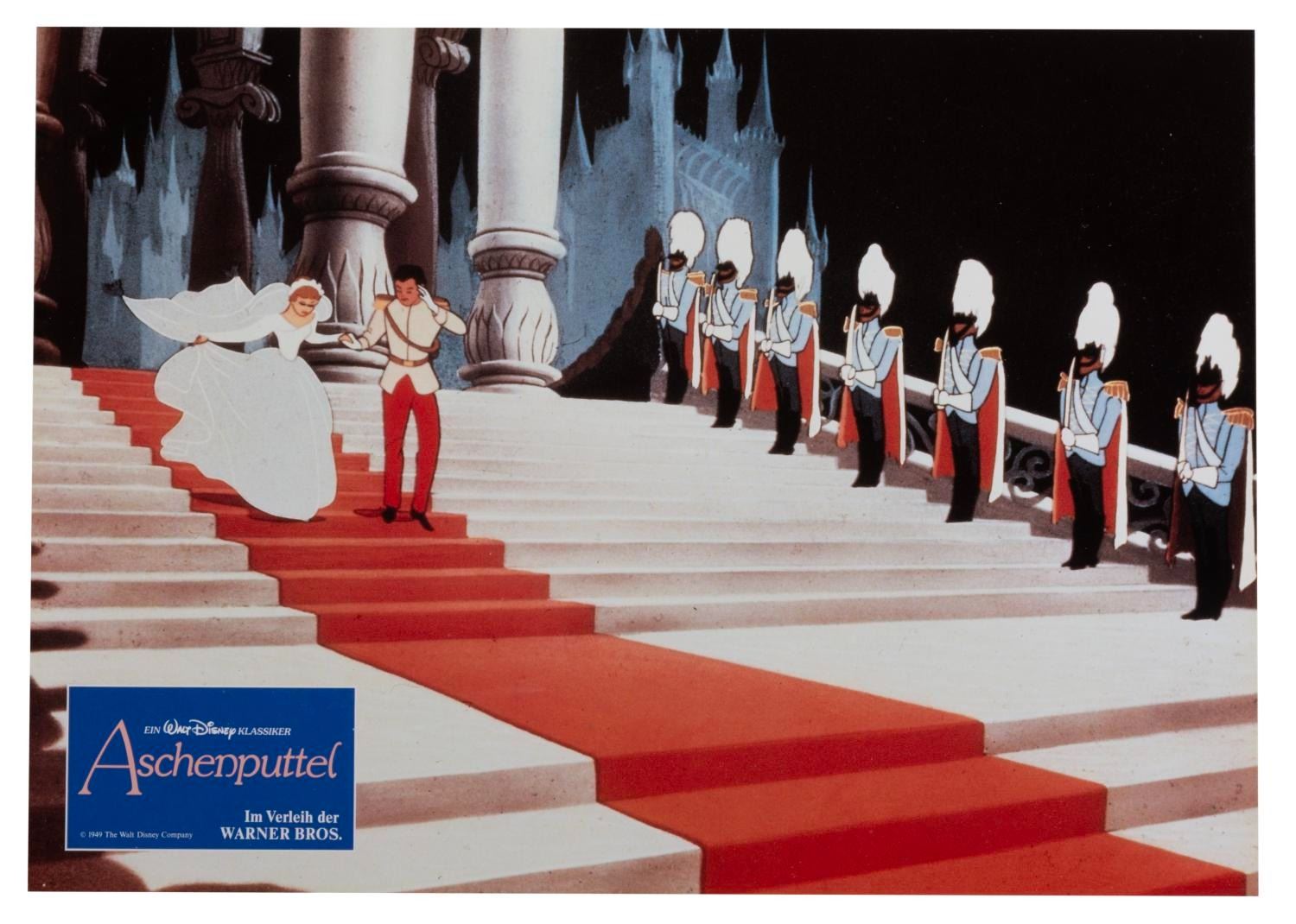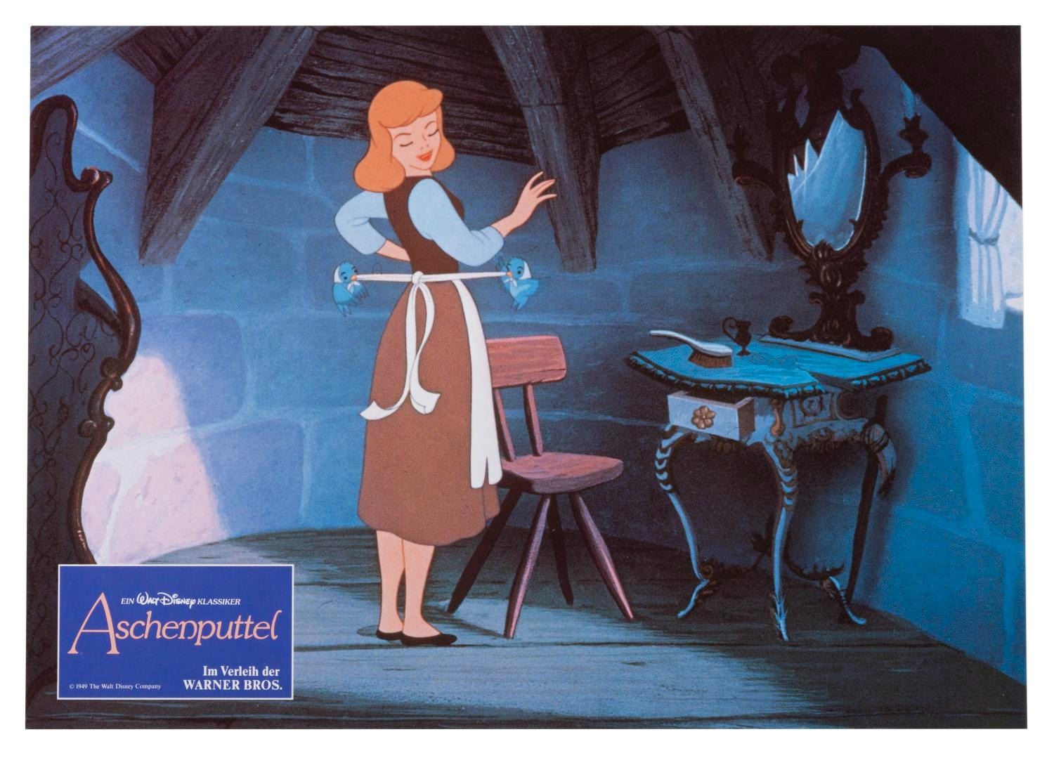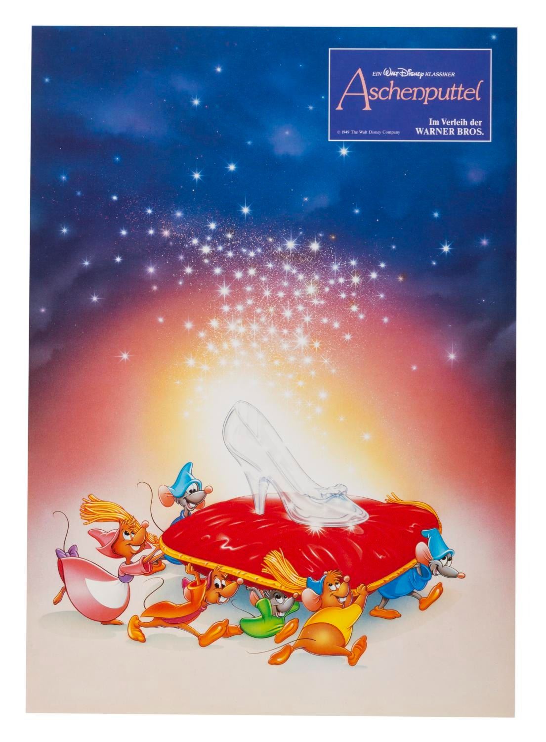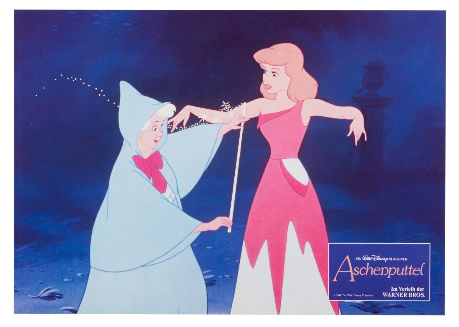 (Disney, 1987) A set of 12 lobby cards for the 1987 re-release of "Cinderella" in Germany, with the original envelope. Measuring 8.25" x 11.25", the cards are in fine condition.