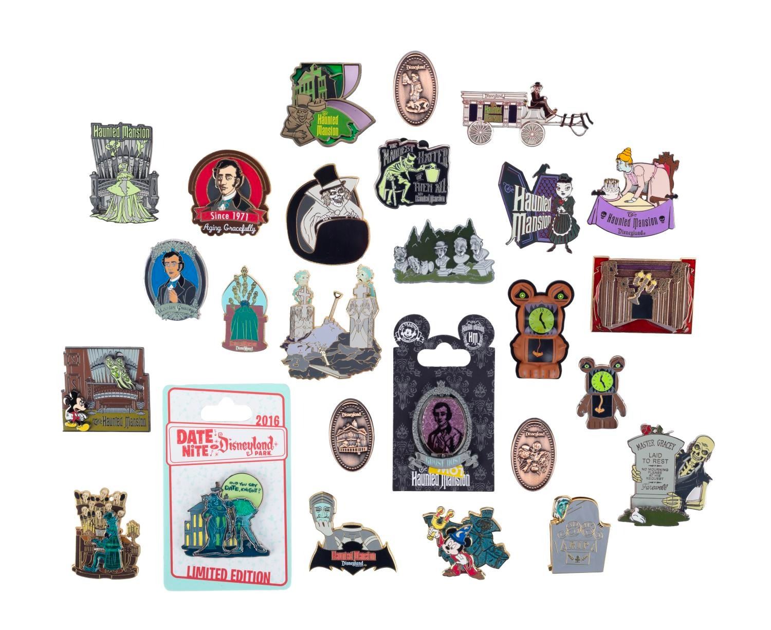 (WDI, 2002-16) A Set of (26) Haunted Mansion Ghost Pins. Notably among this collection are a Walt Disney Imagineering Exclusive, a Disneyland Resort Exclusive, a Cast Exclusive, and a 2016 Date Night at Disneyland Park LE pin on card. Each pin is in fine condition with wear to the elements of some.